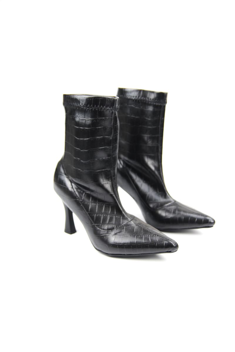 KALIP BİLGİSİ: TAM KALIPTIR. ;TOPUK YÜKSEKLİĞİ: 8 CM’DİR.;DIŞ MALZEME:1.Kalite Suni deridir.;ASTAR: Astarsızdır.;TOPUK TİPİ: İnce topuk.;TABANI: Neolit tabandır