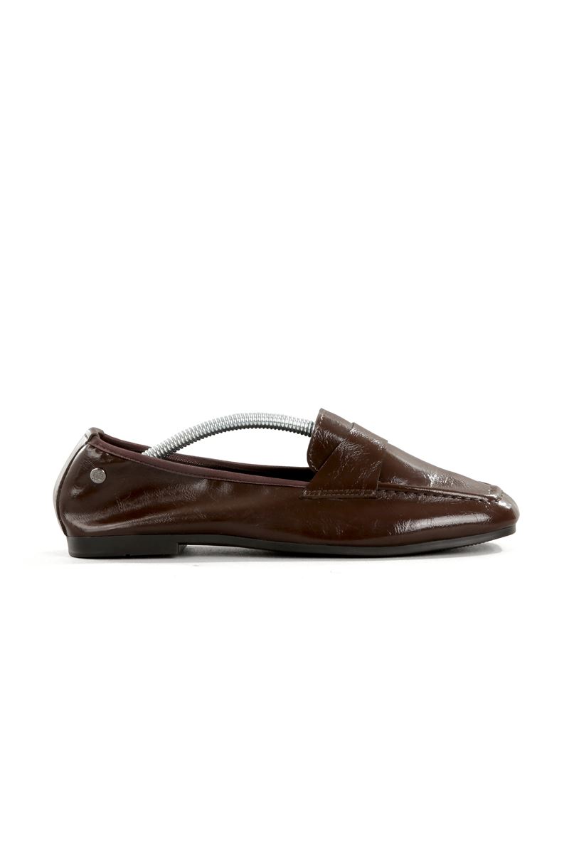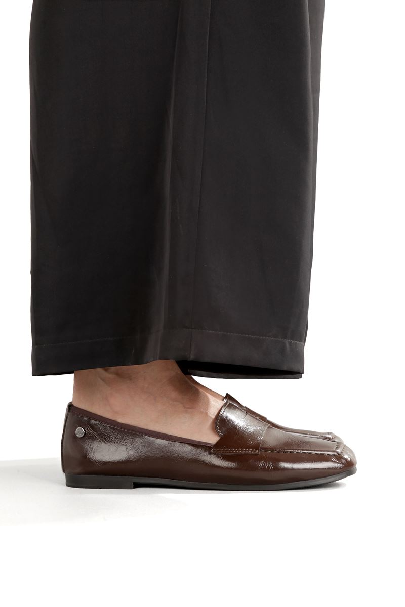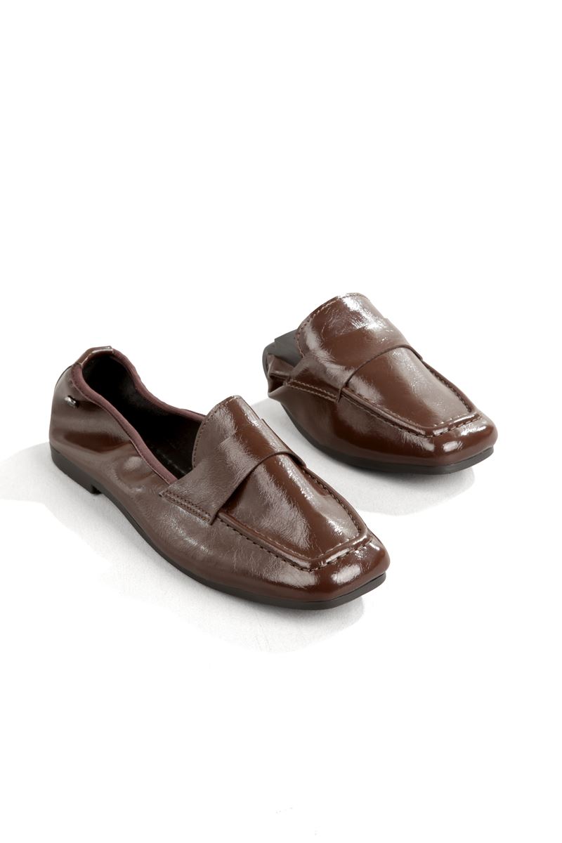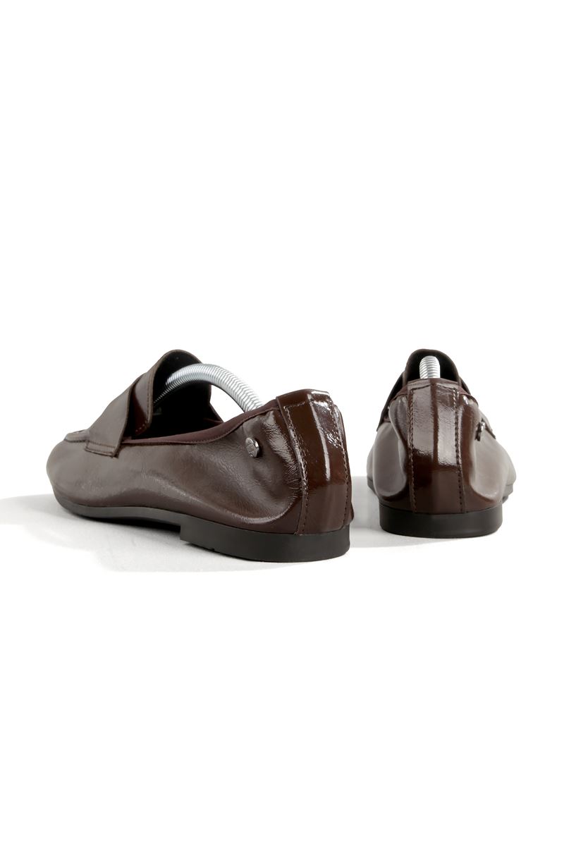 Amaranta Esnek Taban Katlanabilir Kahverengi Rugan Babet Kadın Ayakkabı