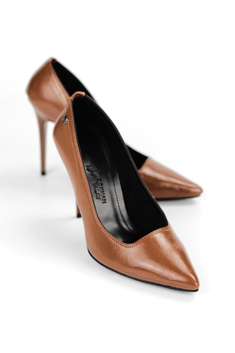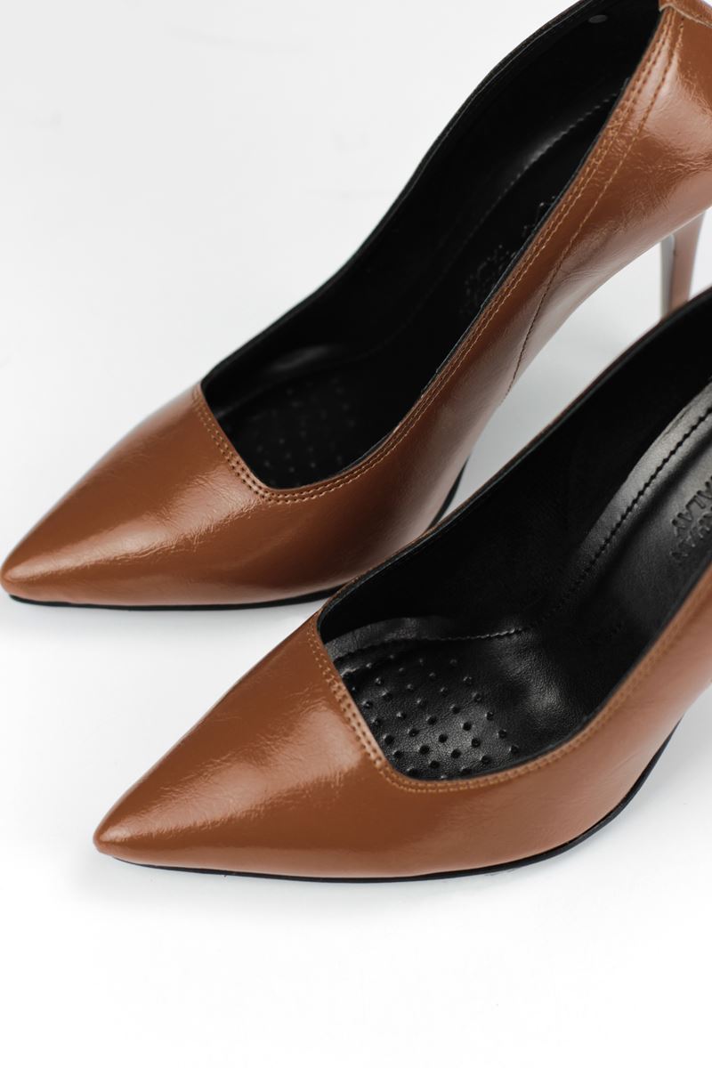 Arabella Esnek Yumuşak Kaymaz Taban (11 cm) Taba Rugan Kadın Topuklu Ayakkabı