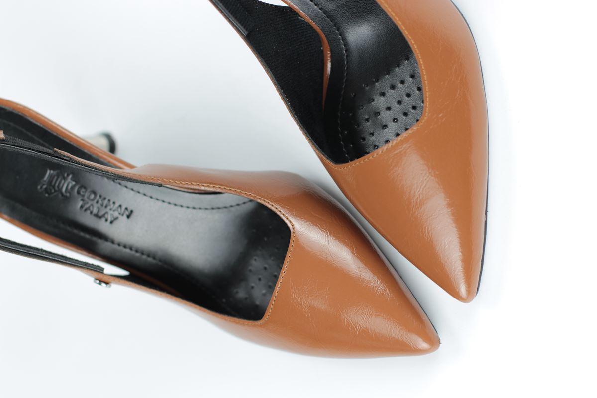 Modern ve şık tasarımıyla öne çıkan Taba Rugan slingback topuklu ayakkabı, rugan dokusu ve zarif ince topuğuyla özel günlerde ve ofis kombinlerinde şıklığınızı tamamlar. Kaymaz tabanı Esnek Dokusu ve rahat kalıbıyla hem stil sahibi hem de konforludur.