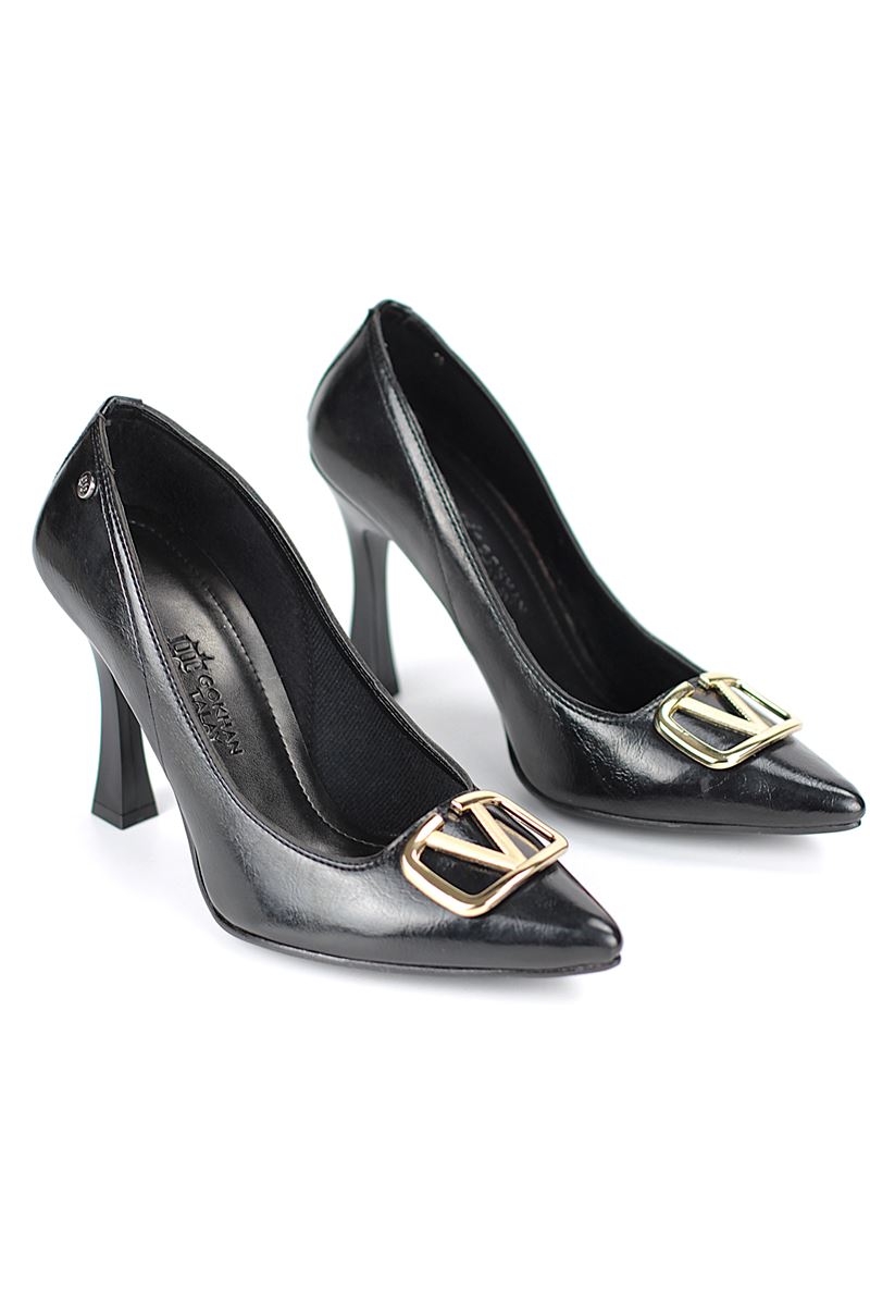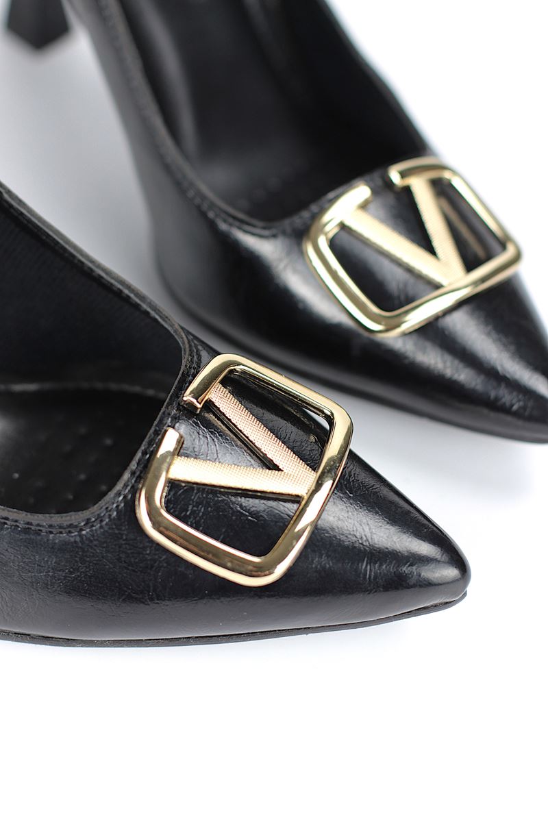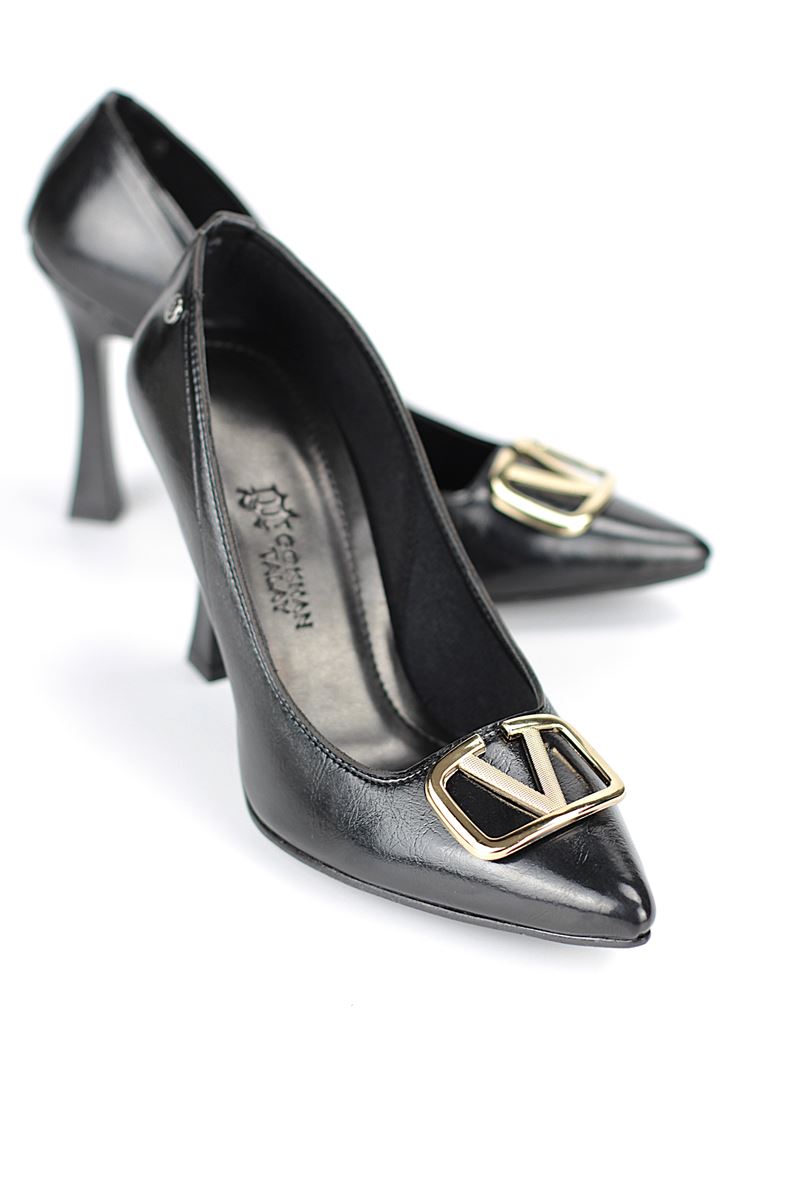 Camille Esnek Yumuşak Kaymaz Taban (10 cm) Siyah Rugan V Toka Kadın Topuklu Ayakkabı