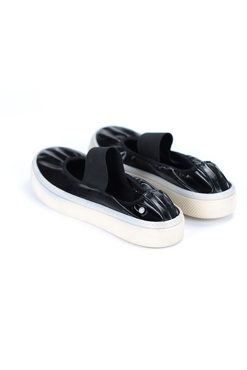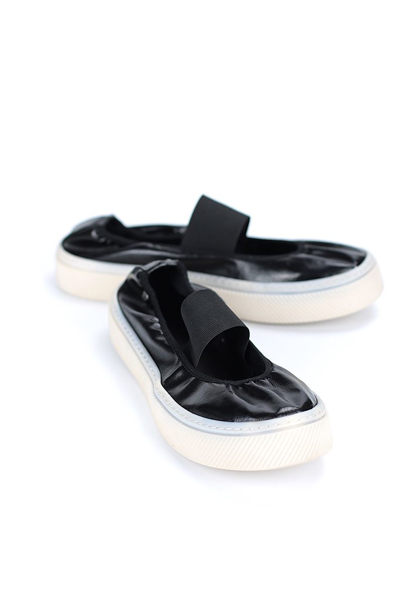 Şıklık ve rahatlığı bir arada sunan siyah spor ayakkabı. Kaymaz tabanı, nefes alabilen yapısı ve parlak rugan detaylı tasarımıyla günlük kombinlerinizin vazgeçilmezi olacak.