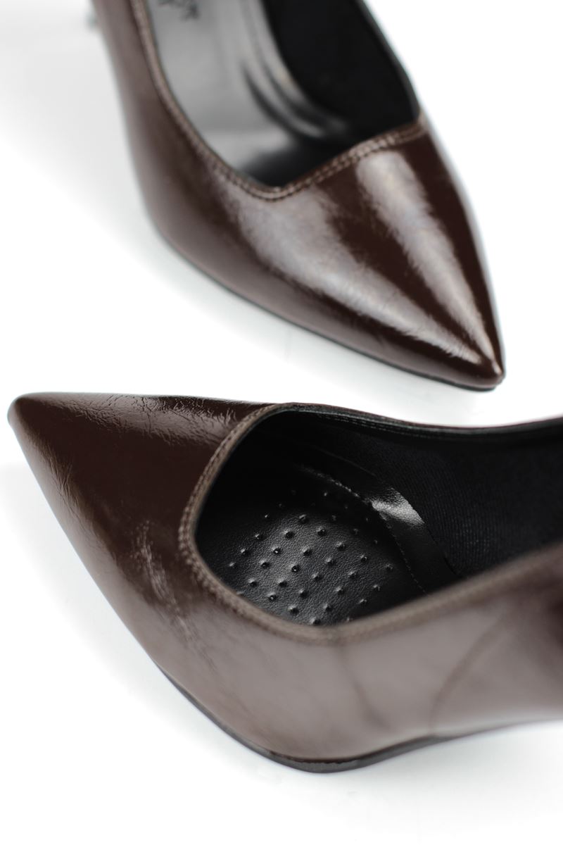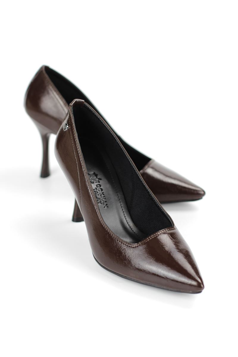 Jimena Esnek Yumuşak Kaymaz Taban (8 cm) Kahverengi Rugan Kadın Topuklu Ayakkabı