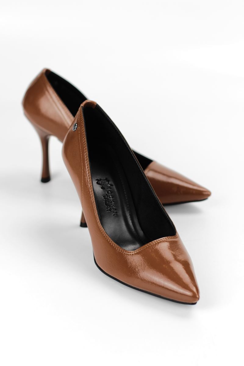 Jimena Esnek Yumuşak Kaymaz Taban (8 cm) Taba Rugan Kadın Topuklu Ayakkabı