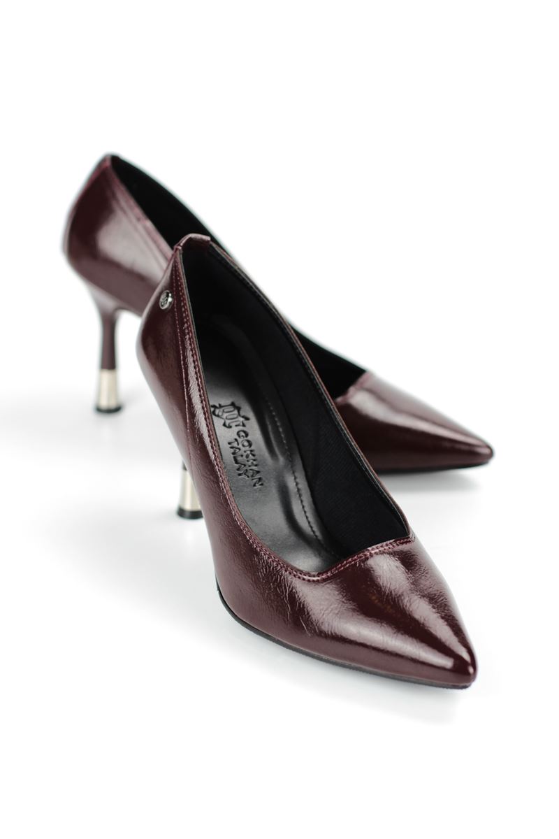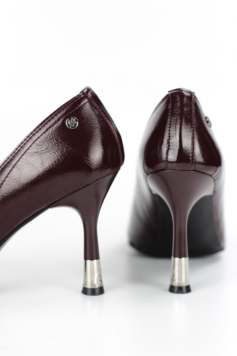 Juliet Esnek Yumuşak Kaymaz Taban (8 cm) Bordo Rugan Kadın Topuklu Ayakkabı