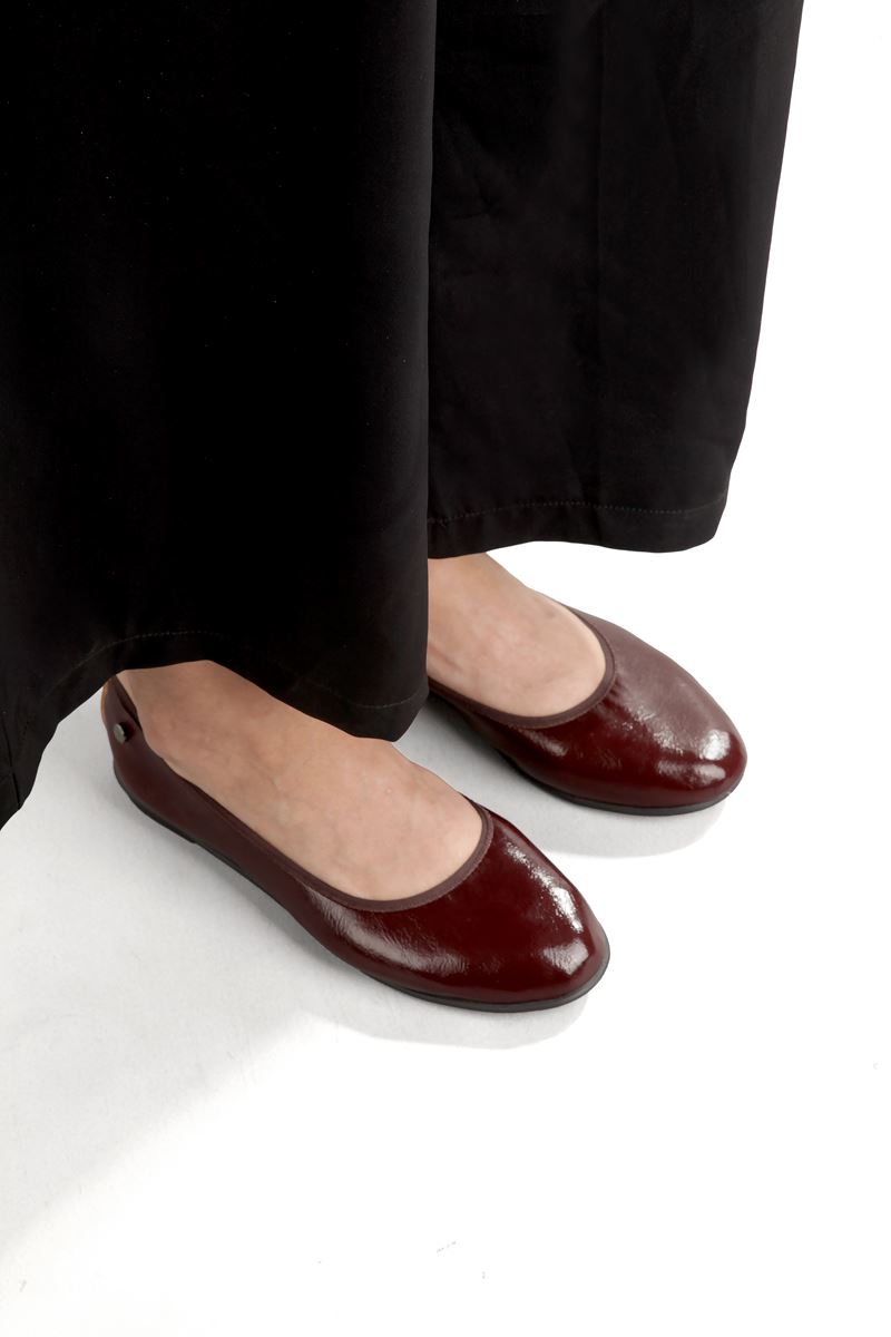 Letizia Esnek Taban Katlanabilir Bordo Rugan Babet Kadın Ayakkabı