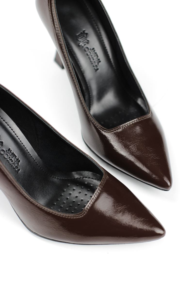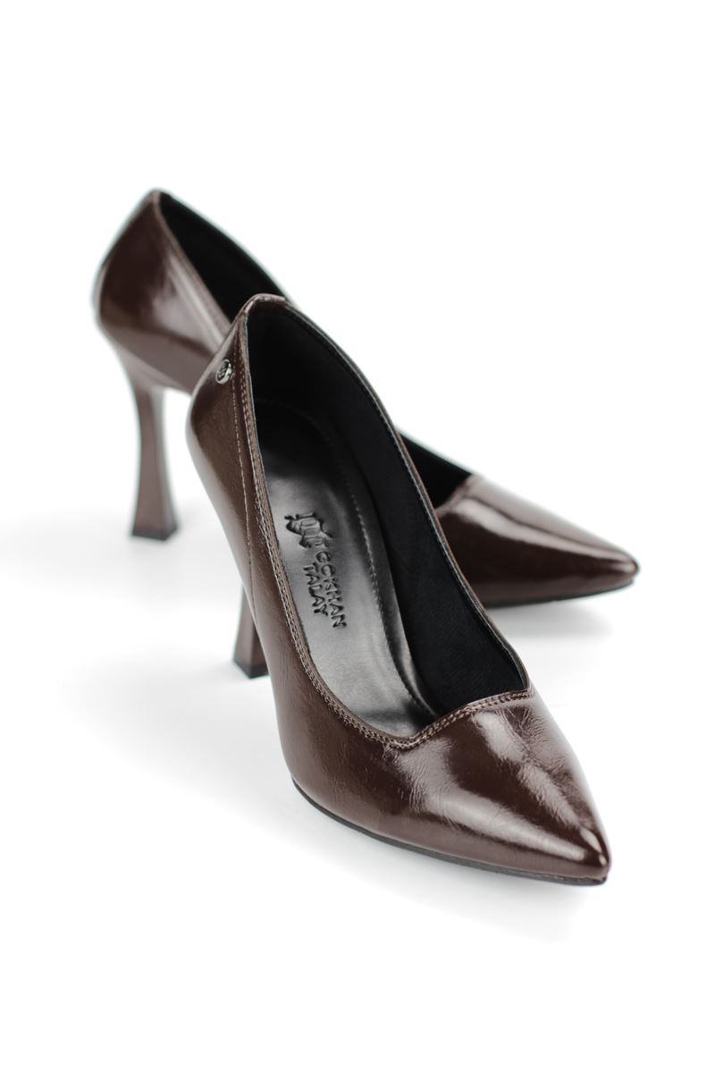 Odette Esnek Yumuşak Kaymaz Taban (10 cm) Kahverengi Rugan Kadın Topuklu Ayakkabı