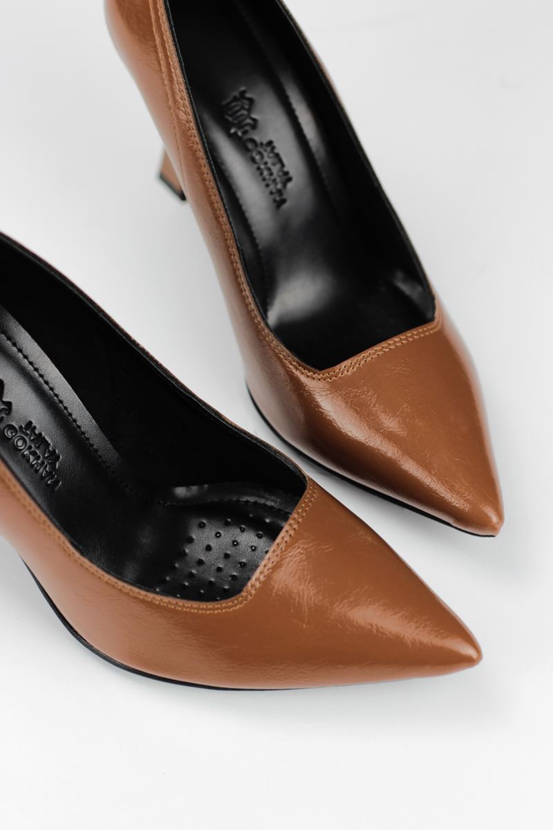 Odette Esnek Yumuşak Kaymaz Taban (10 cm) Taba Rugan Kadın Topuklu Ayakkabı