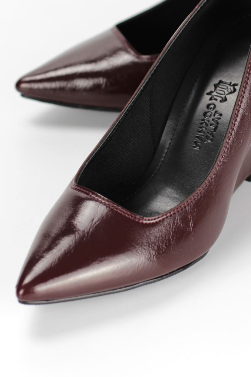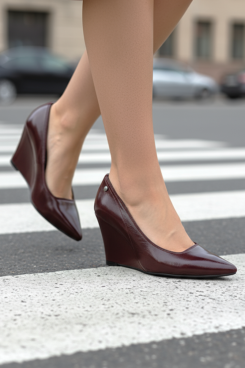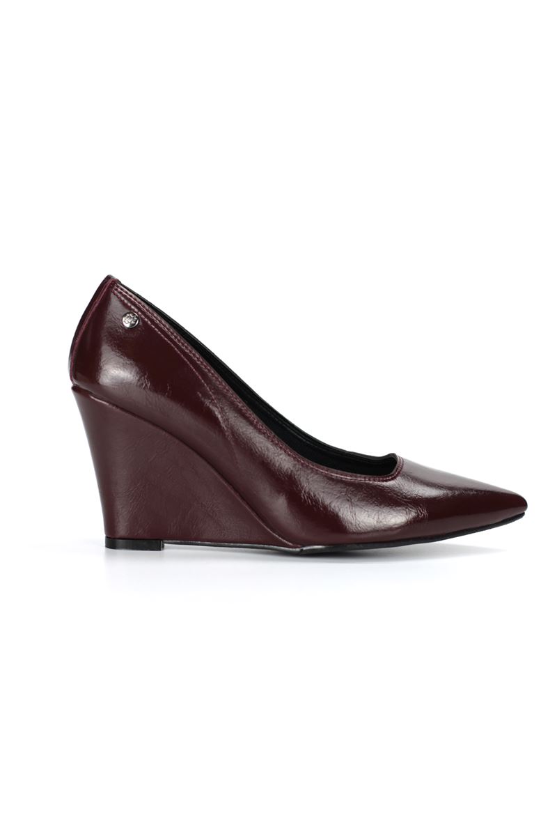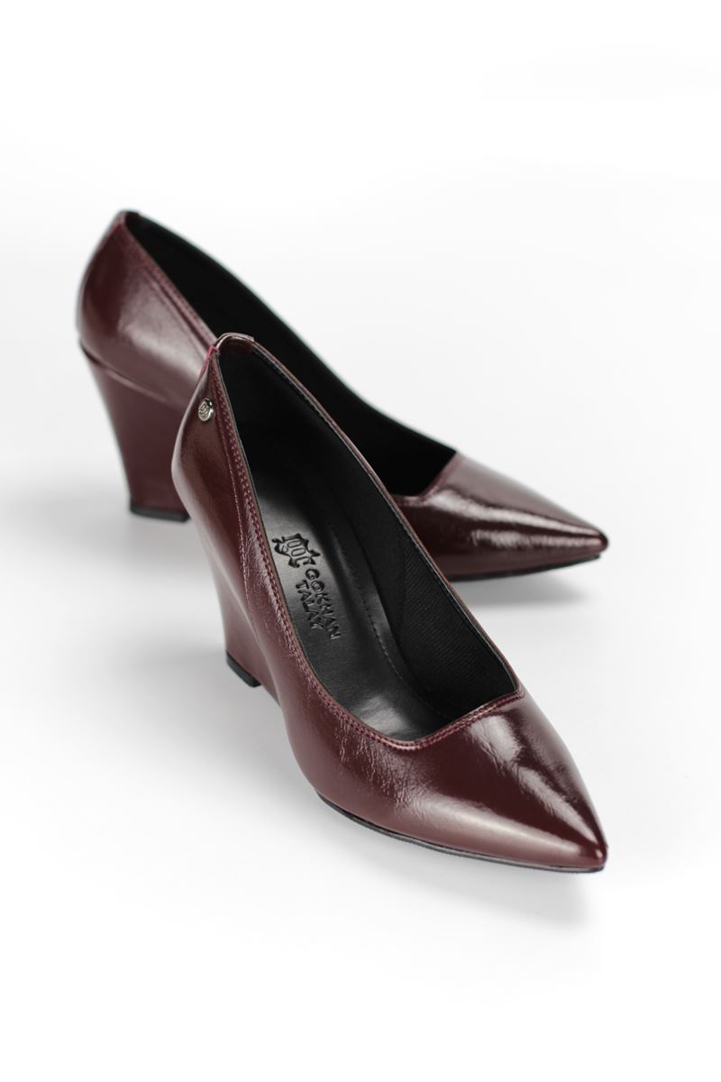 Perla Esnek Yumuşak Kaymaz Taban (8 cm) Kadın Dolgu Topuk Bordo Rugan Ayakkabı