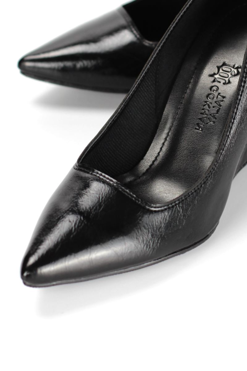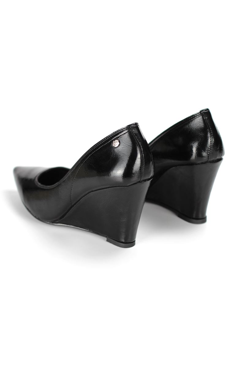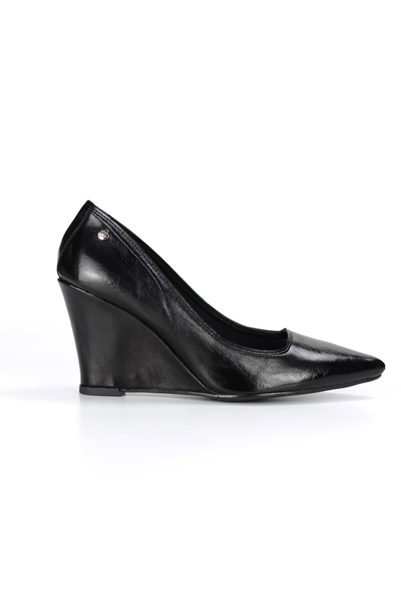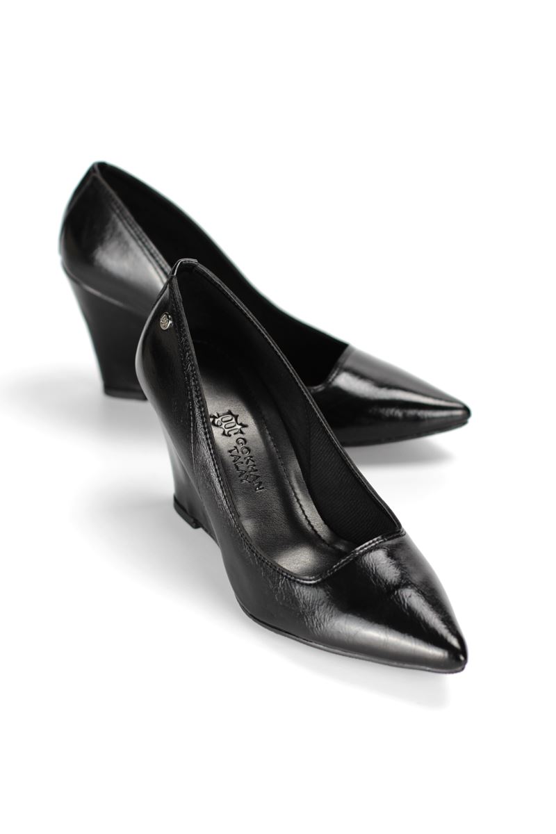 Perla Esnek Yumuşak Kaymaz Taban (8 cm) Kadın Dolgu Topuk Siyah Rugan Ayakkabı