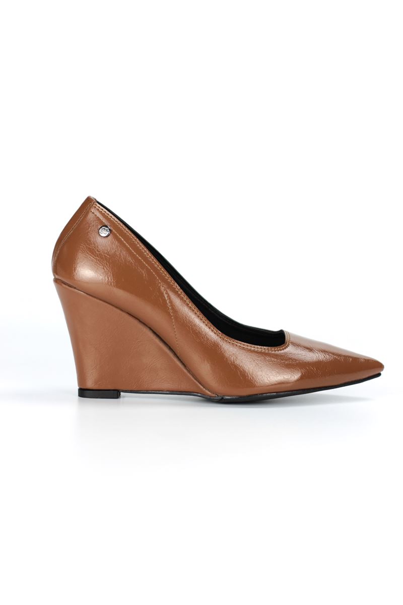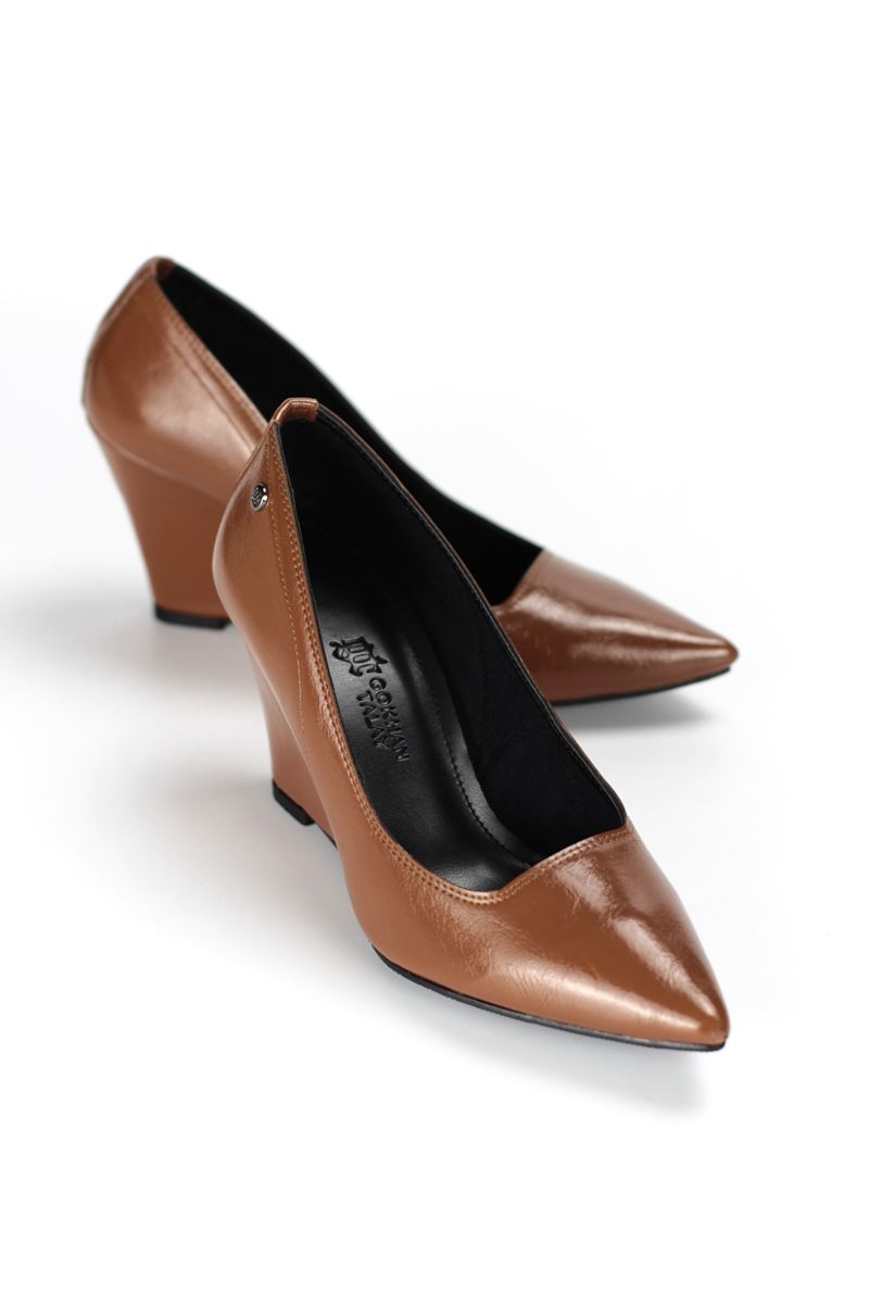 Perla Esnek Yumuşak Kaymaz Taban (8 cm) Kadın Dolgu Topuk Taba Rugan Ayakkabı