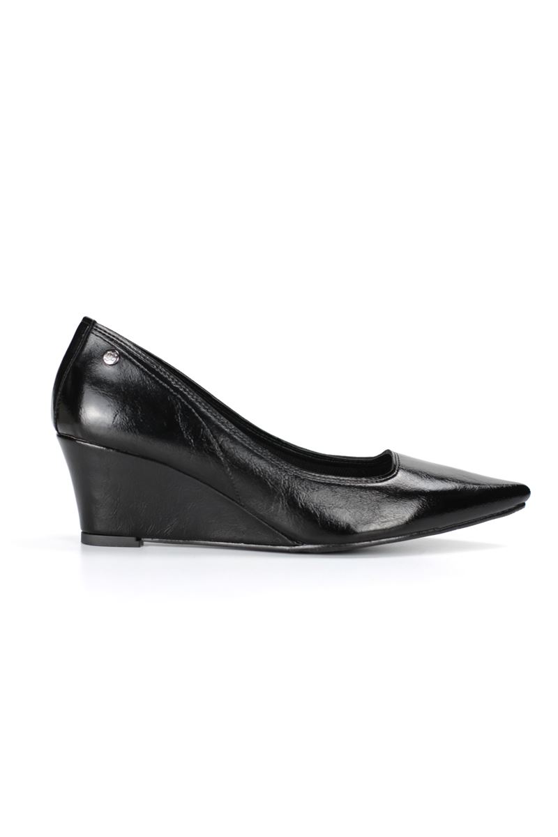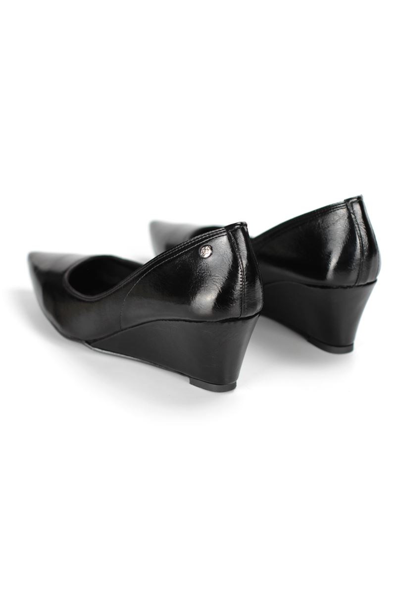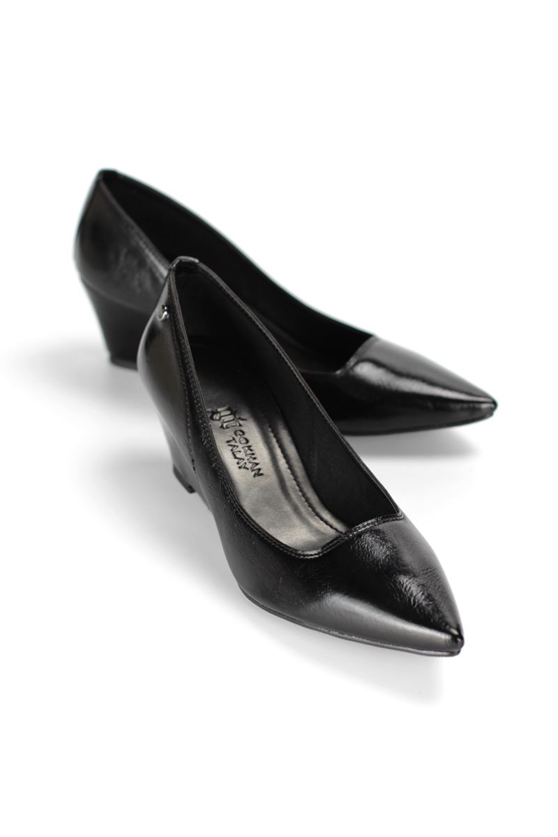 Pia Esnek Yumuşak Kaymaz Taban (4 cm) Kadın Dolgu Topuk Siyah Rugan Ayakkabı
