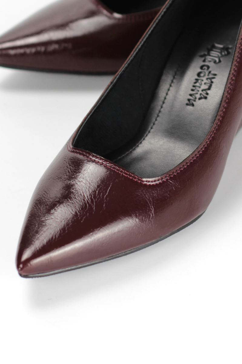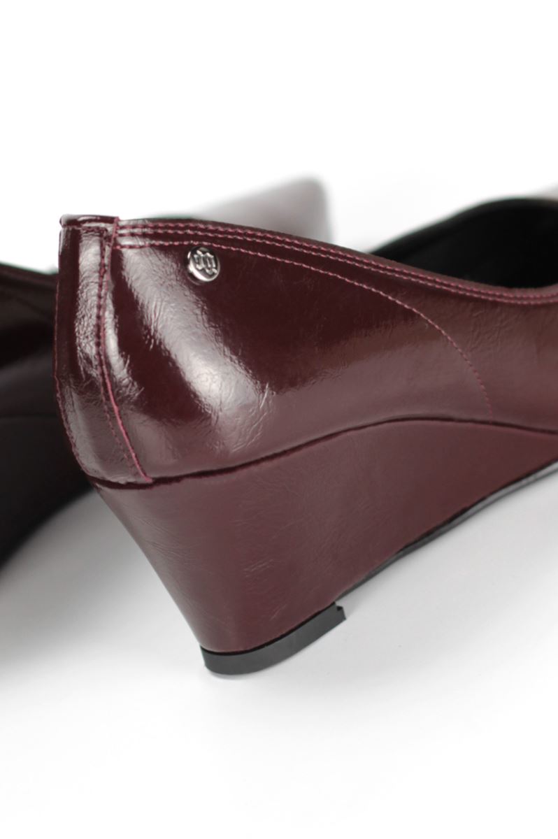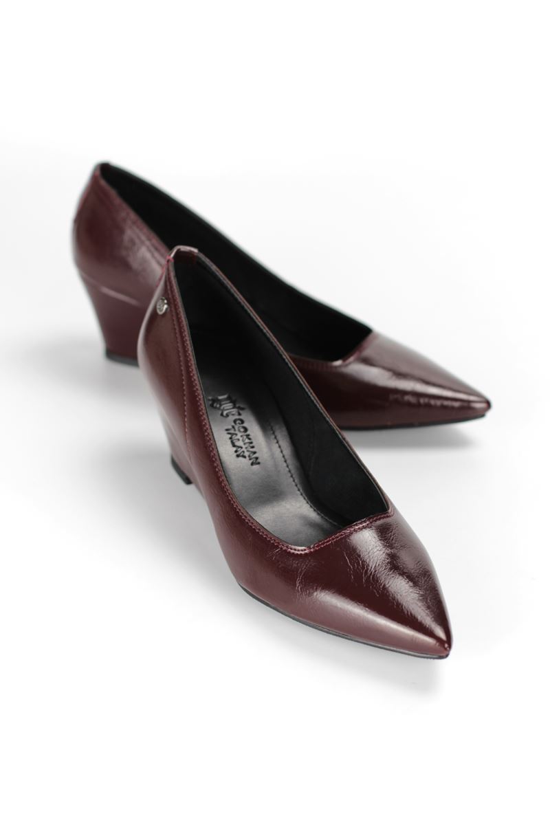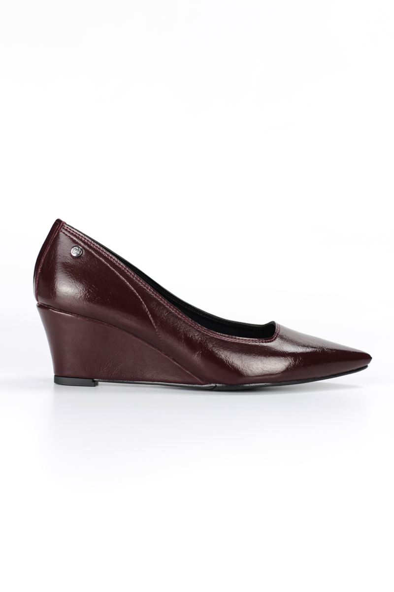 Pia Esnek Yumuşak Kaymaz Taban (4 cm) Kadın Dolgu Topuk Bordo Rugan Ayakkabı