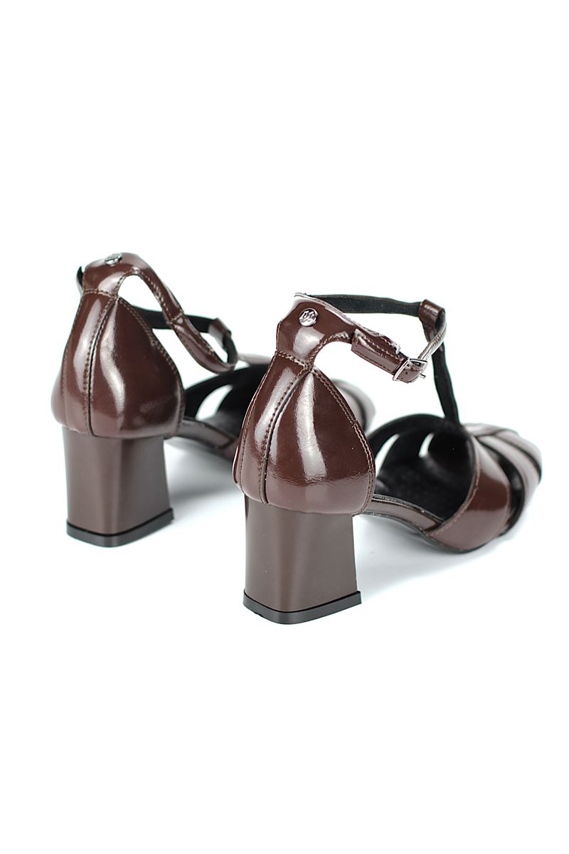 Magnolia Esnek Yumuşak Kaymaz Taban (4 cm) Kahverengi Rugan Açık Lastikli Kadın Topuklu Ayakkabı