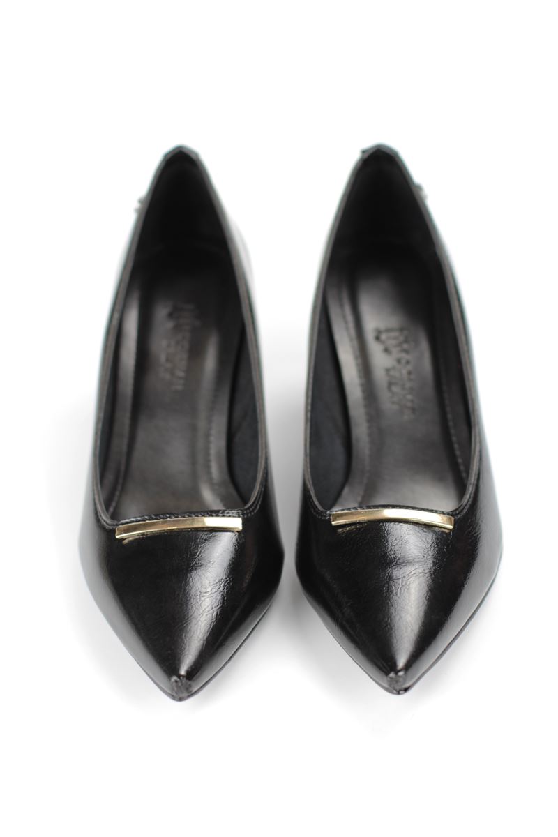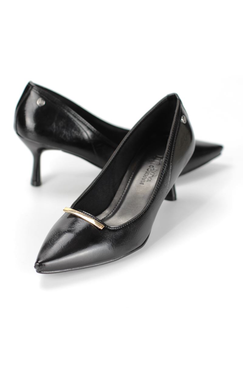 Sasha Esnek Yumuşak Kaymaz Taban (4 cm) Siyah Rugan İnce Çubuk Toka Kadın Topuklu Ayakkabı