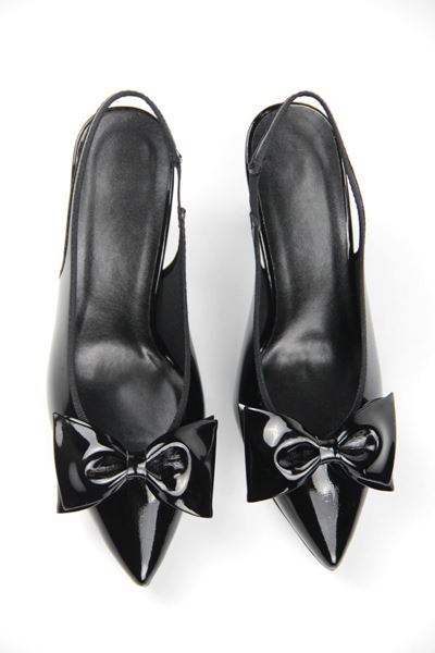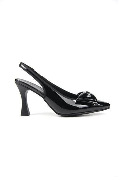 Texass Siyah Rugan Fiyonklu Orta Topuklu (8 cm) Kadın Topuklu Ayakkabı
