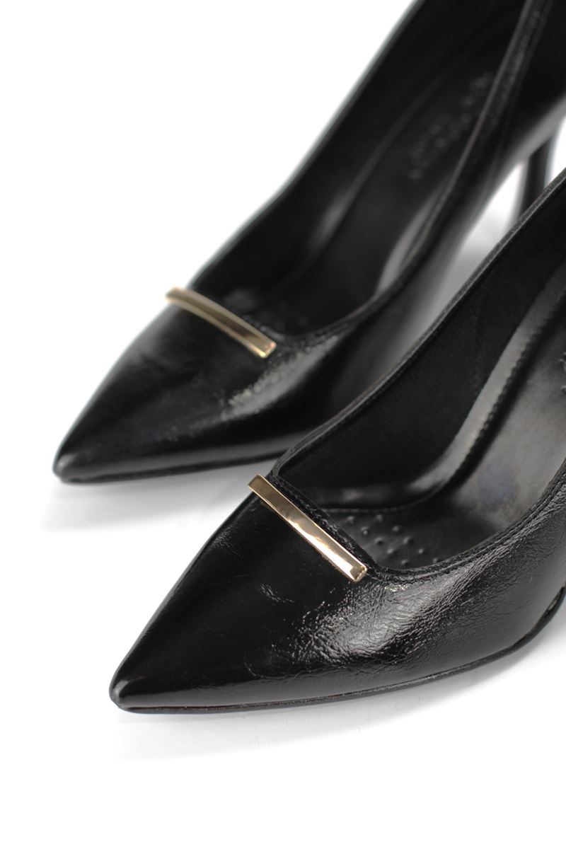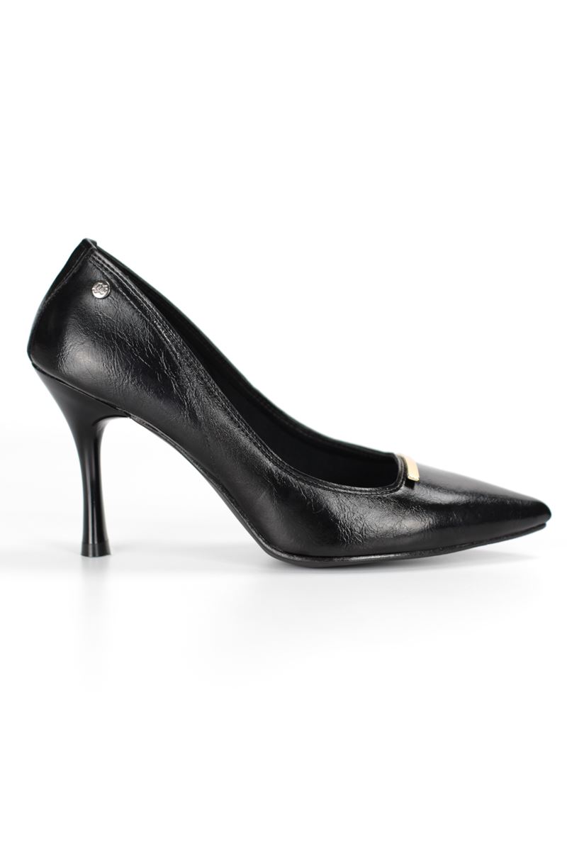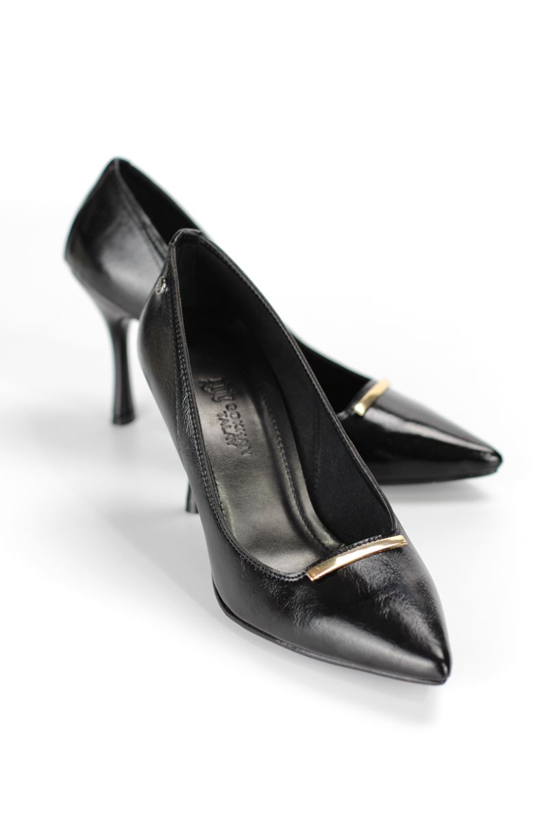 Arina Esnek Yumuşak Kaymaz Taban (8 cm) Siyah Rugan İnce Çubuk Toka Kadın Topuklu Ayakkabı
