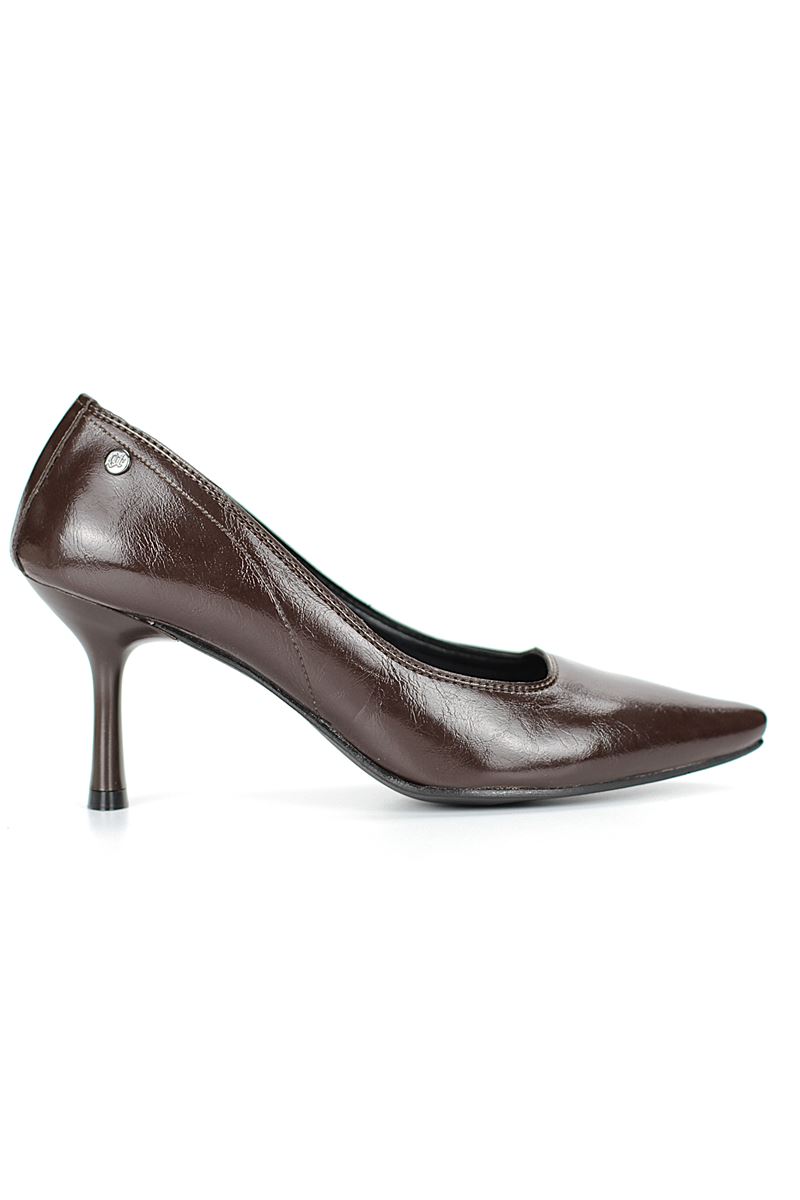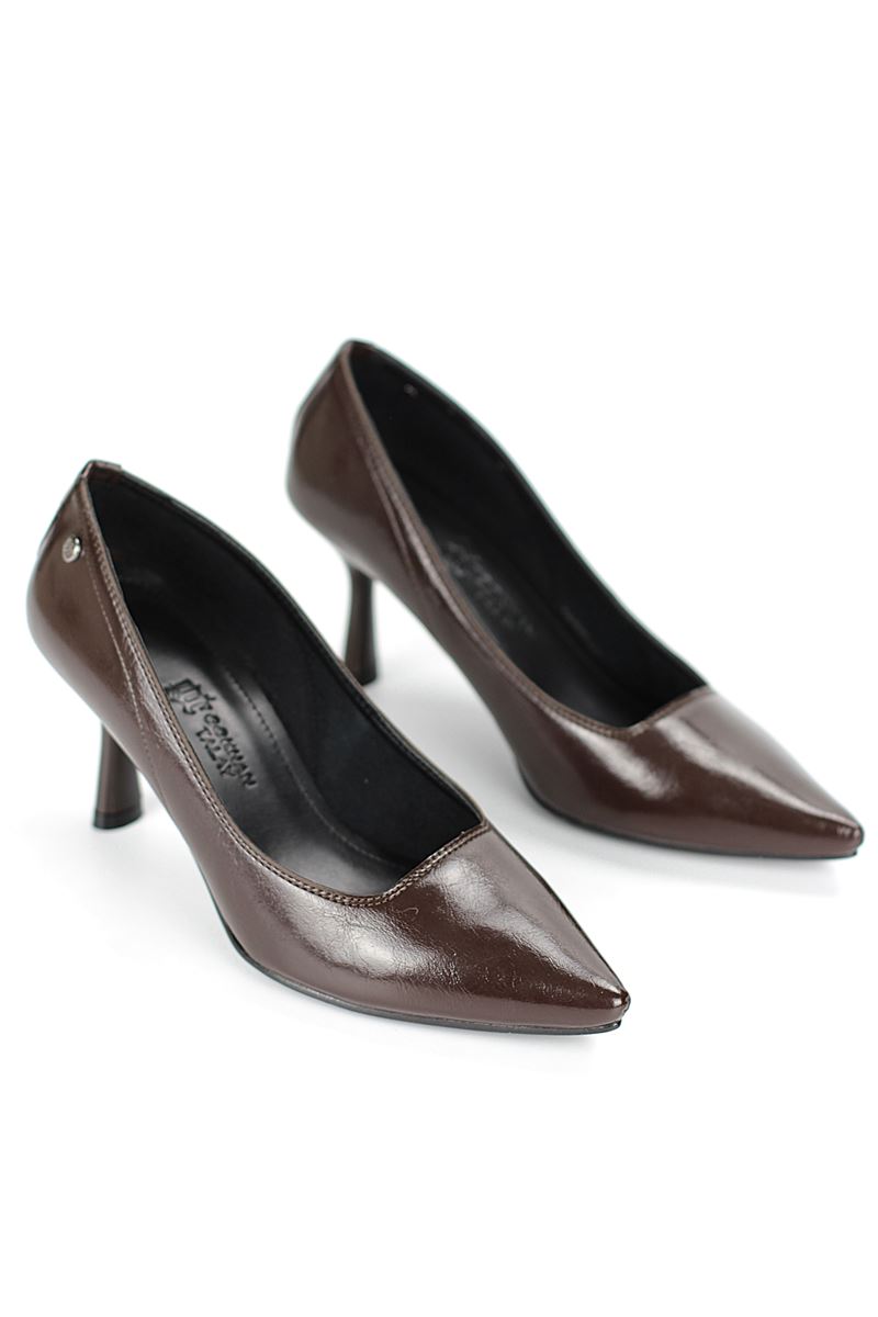 Ayça Esnek Yumuşak Kaymaz Taban (7 cm) Kahverengi Rugan Kadın Topuklu Ayakkabı