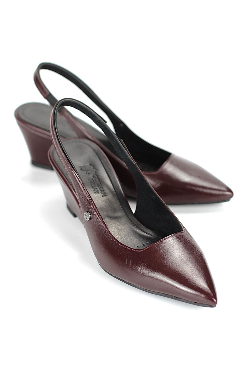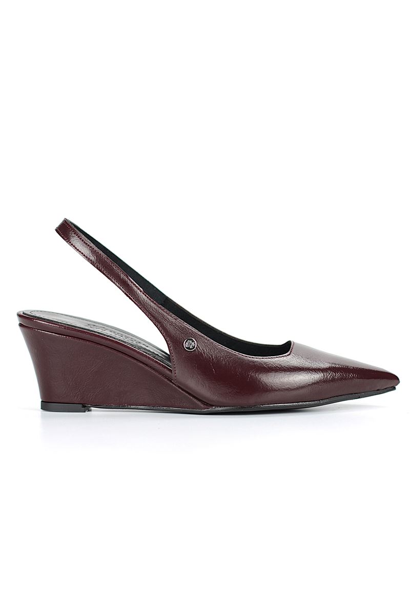 Modern ve şık tasarımıyla öne çıkan Bordo Rugan slingback topuklu ayakkabı, rugan dokusu ve Dolgu topuğuyla özel günlerde ve ofis kombinlerinde şıklığınızı tamamlar. Kaymaz tabanı Esnek Dokusu ve rahat kalıbıyla hem stil sahibi hem de konforludur.