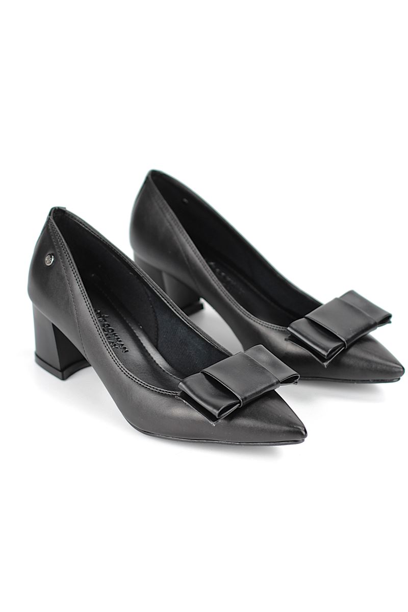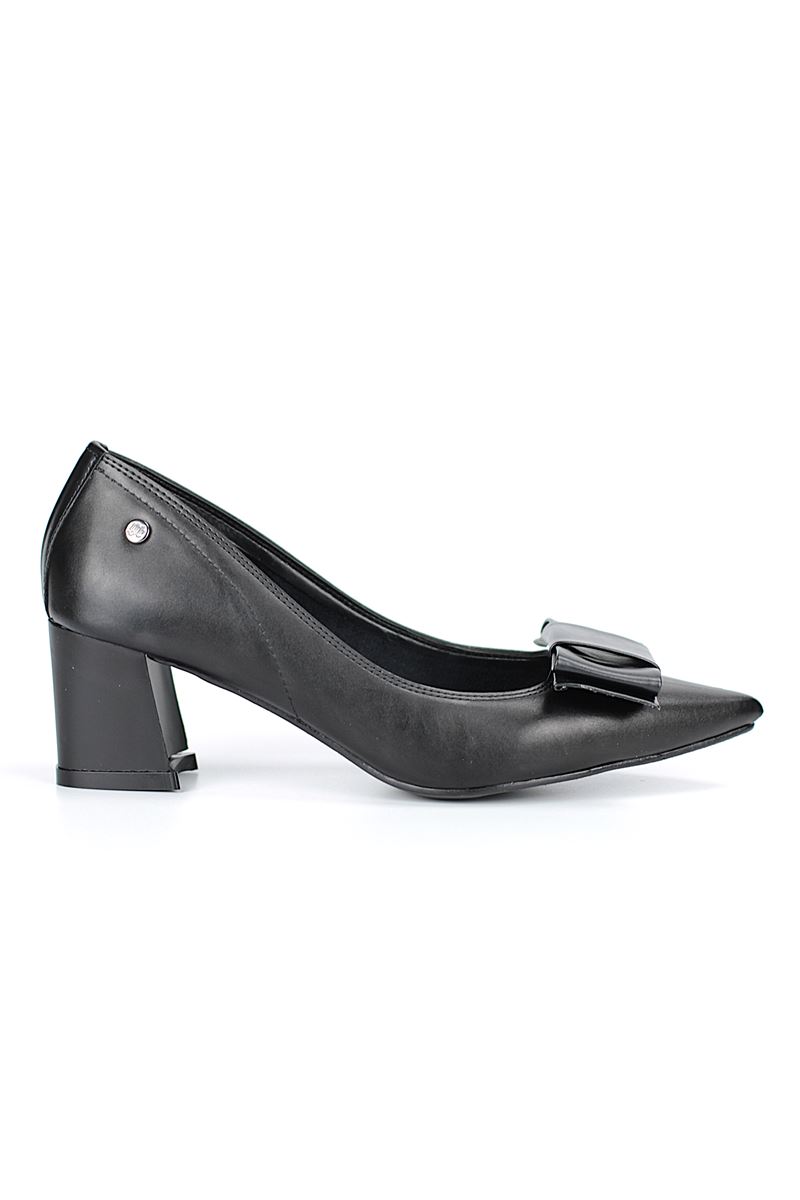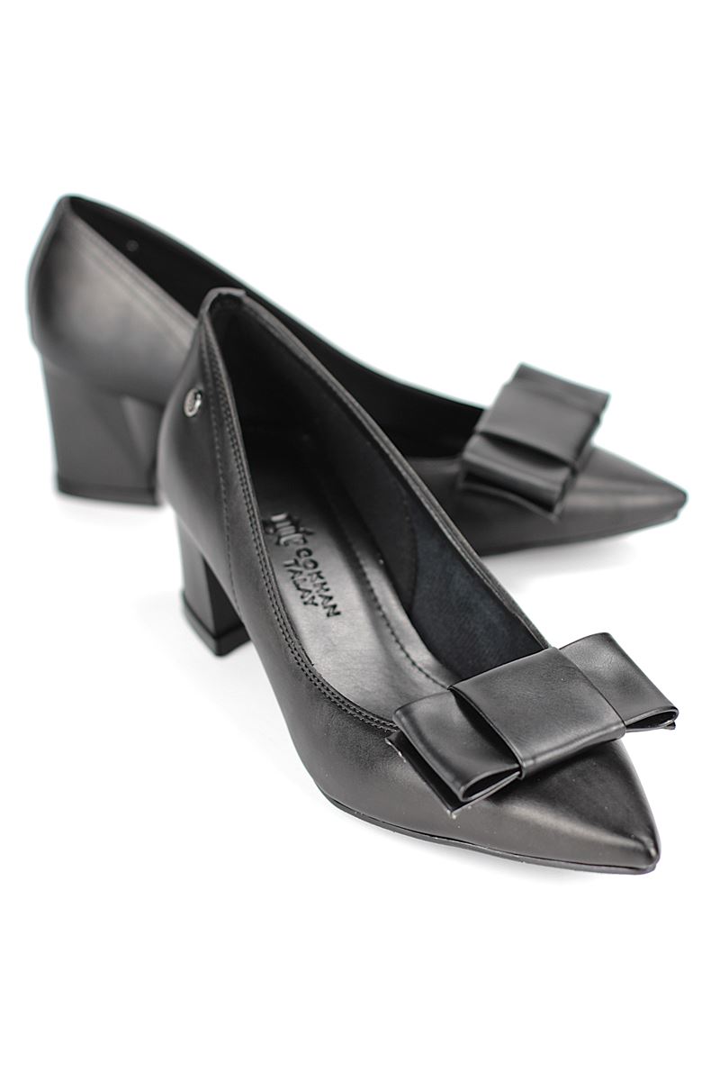 Benedita Esnek Yumuşak Kaymaz Taban (4 cm) Kadın Kalın Topuk Köşe Fiyonkllu Siyah Cilt Ayakkabı