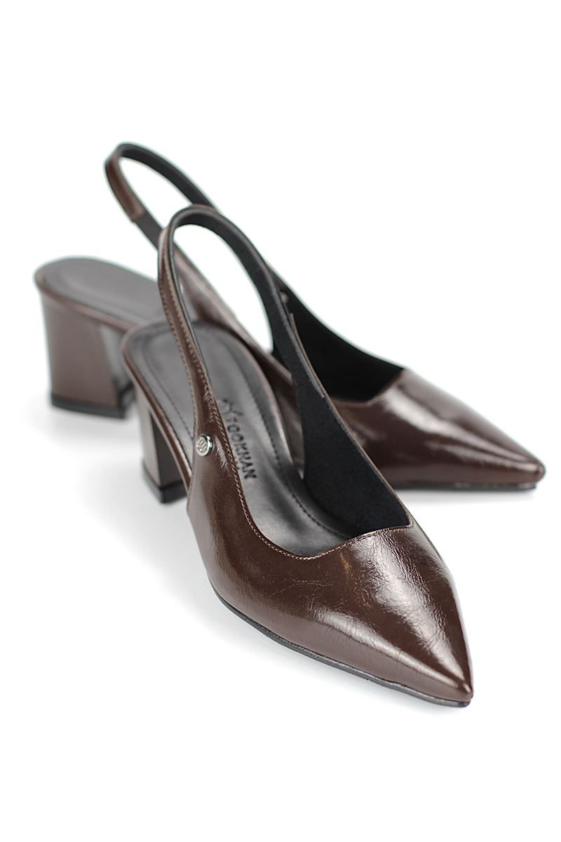 Modern ve şık tasarımıyla öne çıkan Kahverengi Rugan slingback topuklu ayakkabı, rugan dokusu ve zarif i topuğuyla özel günlerde ve ofis kombinlerinde şıklığınızı tamamlar. Kaymaz tabanı Esnek Dokusu ve rahat kalıbıyla hem stil sahibi hem de konforludur.