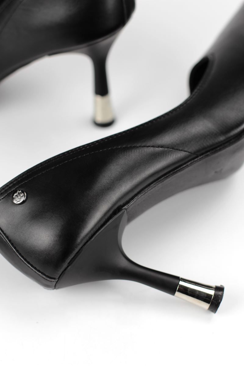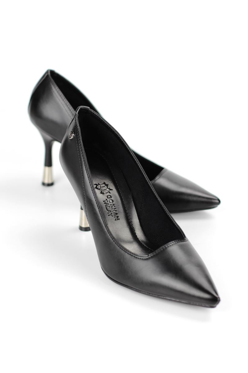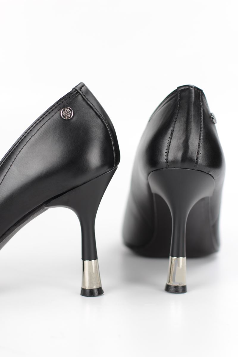Juliet Esnek Yumuşak Kaymaz Taban (8 cm) Siyah Cilt Kadın Topuklu Ayakkabı