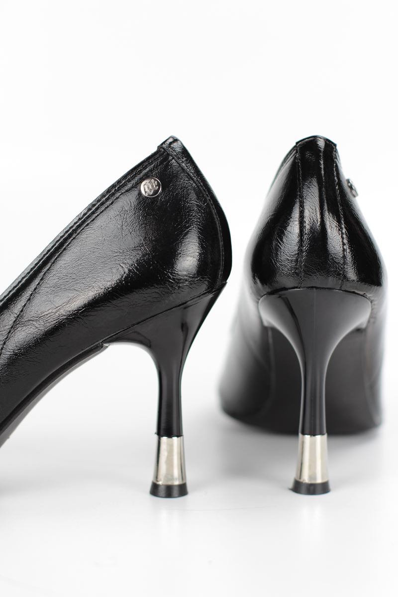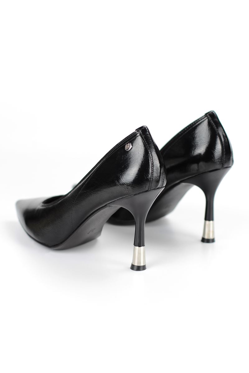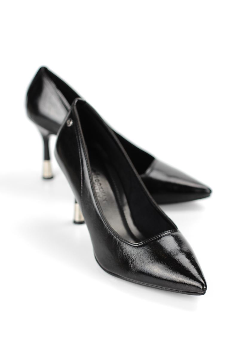 Juliet Esnek Yumuşak Kaymaz Taban (8 cm) Siyah Rugan Kadın Topuklu Ayakkabı