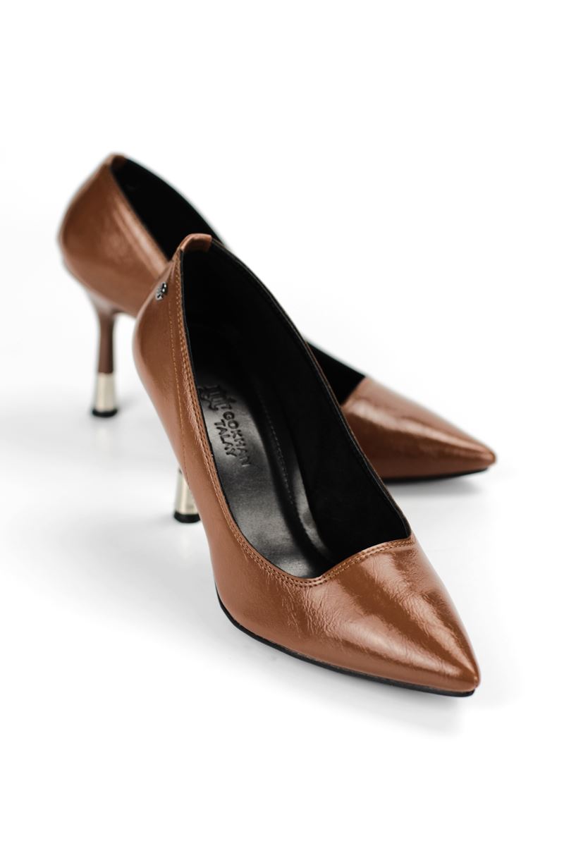 Juliet Esnek Yumuşak Kaymaz Taban (8 cm) Taba Rugan Kadın Topuklu Ayakkabı
