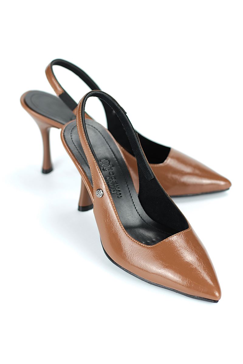 Modern ve şık tasarımıyla öne çıkan Taba Rugan slingback topuklu ayakkabı, rugan dokusu ve zarif ince topuğuyla özel günlerde ve ofis kombinlerinde şıklığınızı tamamlar. Kaymaz tabanı Esnek Dokusu ve rahat kalıbıyla hem stil sahibi hem de konforludur.