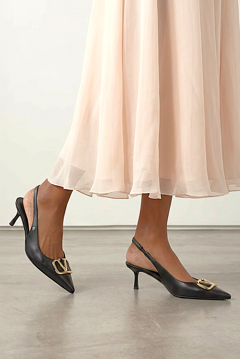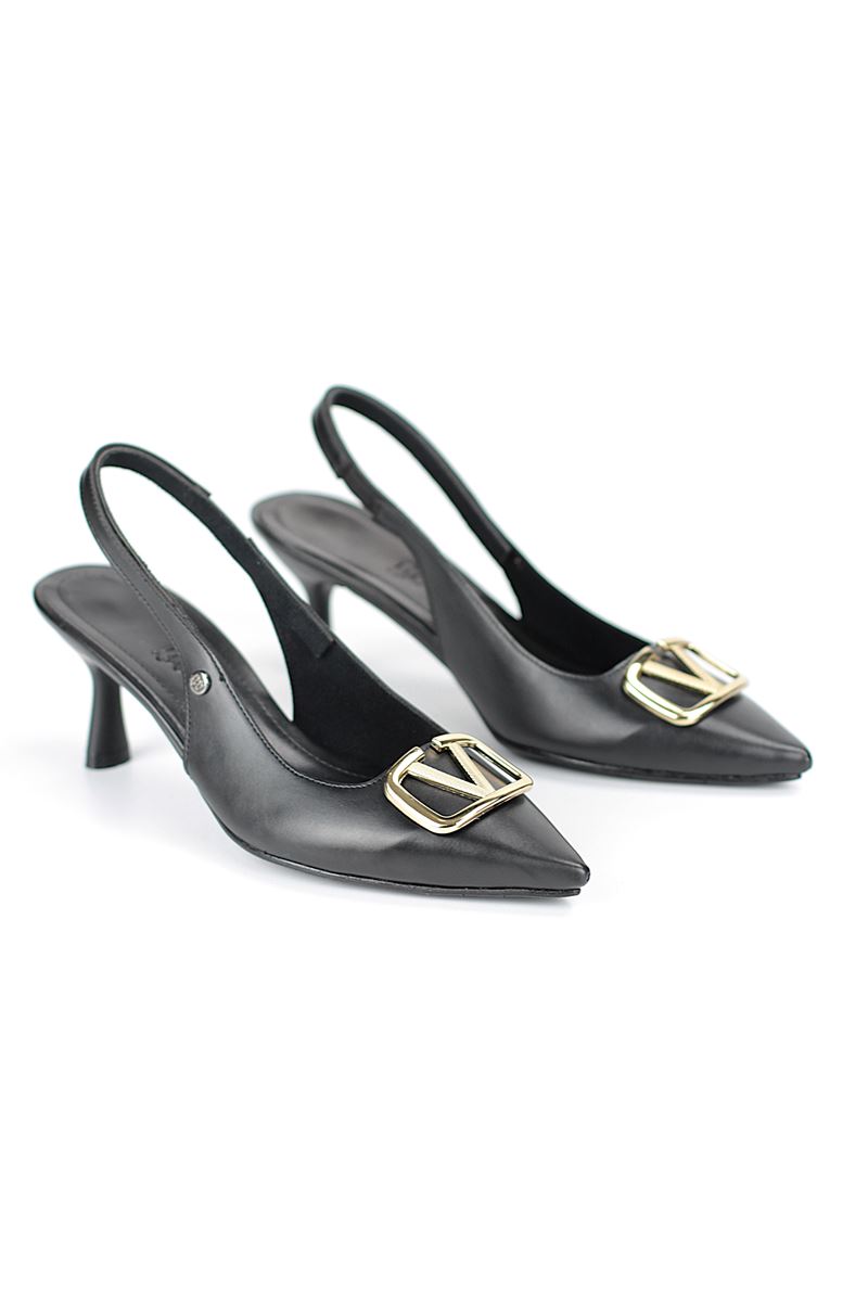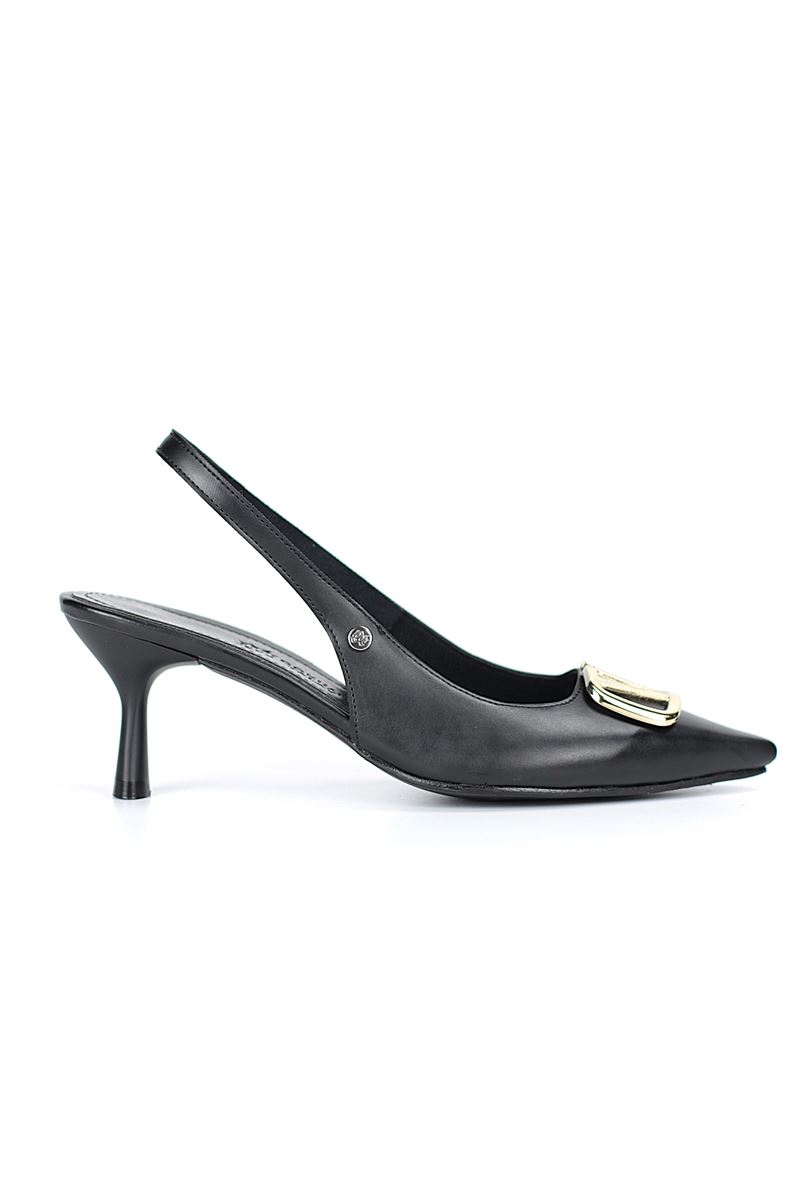 Modern ve şık tasarımıyla öne çıkan Siyah Cilt slingback topuklu ayakkabı, zarif ince topuğuyla özel günlerde ve ofis kombinlerinde şıklığınızı tamamlar. Kaymaz tabanı Esnek Dokusu ve rahat kalıbıyla hem stil sahibi hem de konforludur.