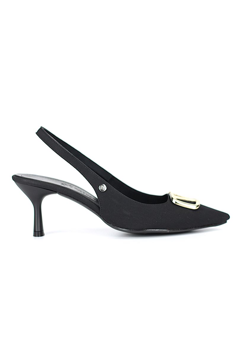 Modern ve şık tasarımıyla öne çıkan Siyah Süet slingback topuklu ayakkabı, zarif ince topuğuyla özel günlerde ve ofis kombinlerinde şıklığınızı tamamlar. Kaymaz tabanı Esnek Dokusu ve rahat kalıbıyla hem stil sahibi hem de konforludur.