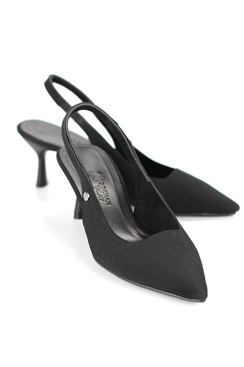 Modern ve şık tasarımıyla öne çıkan Sİyah Süet slingback topuklu ayakkabı, rugan dokusu ve zarif ince topuğuyla özel günlerde ve ofis kombinlerinde şıklığınızı tamamlar. Kaymaz tabanı Esnek Dokusu ve rahat kalıbıyla hem stil sahibi hem de konforludur.