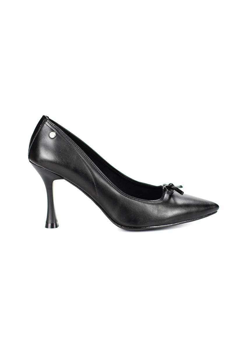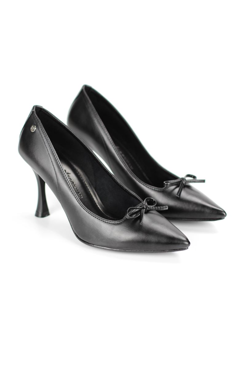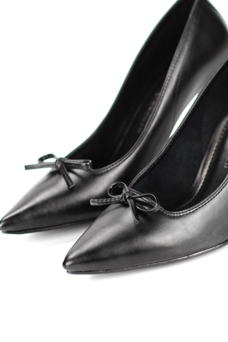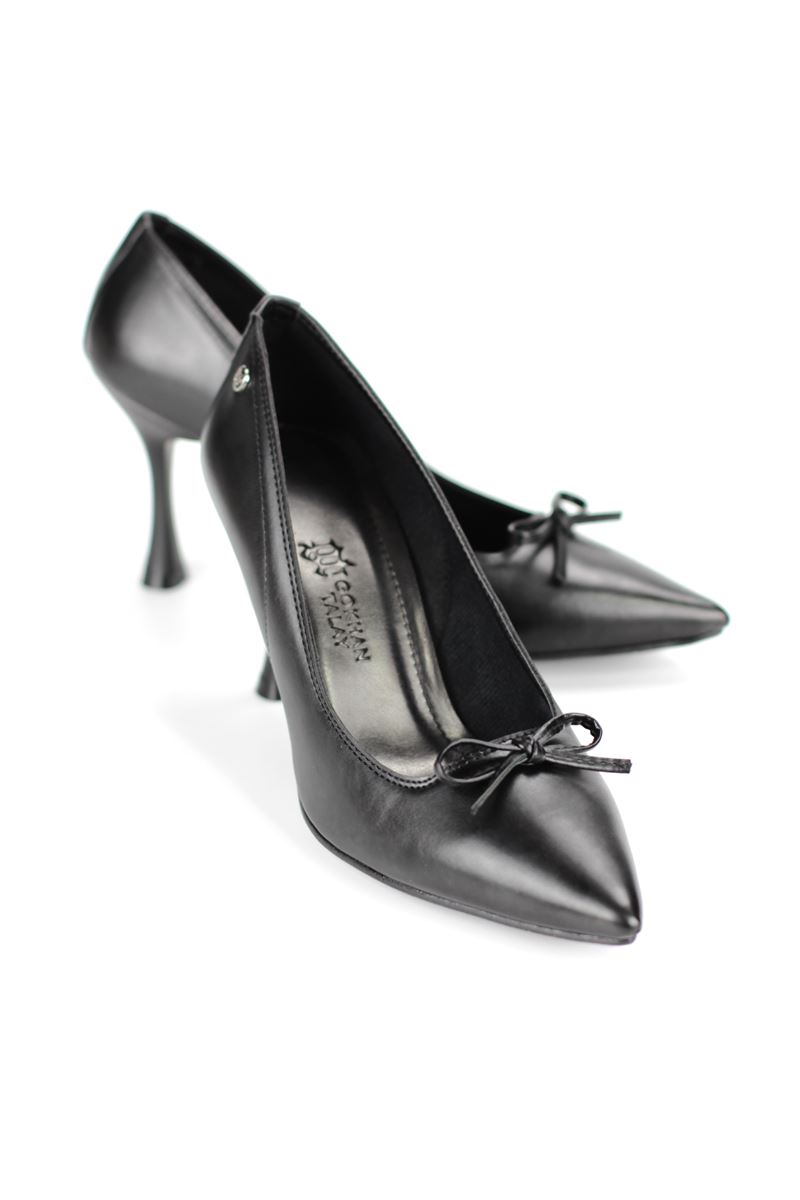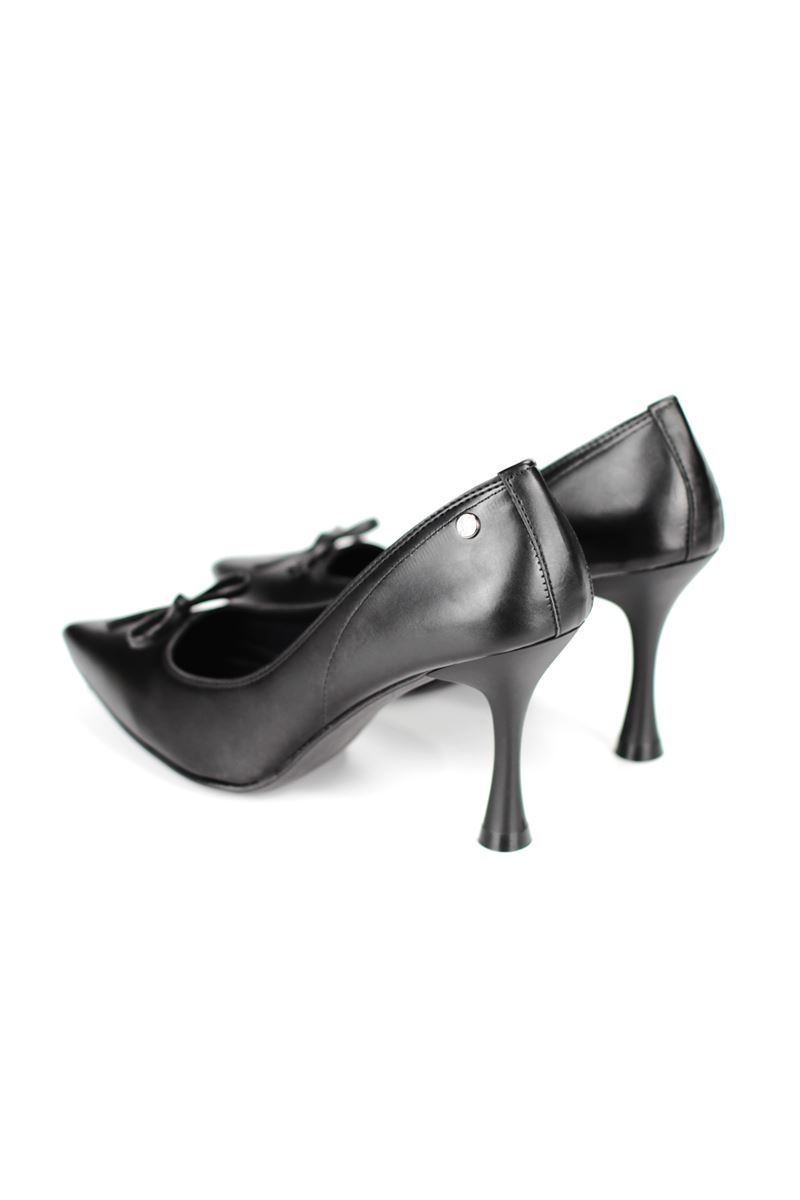 Mila Esnek Yumuşak Kaymaz Taban (8 cm) Siyah Cilt İnce Bıyık Fiyonk Kadın Topuklu Ayakkabı