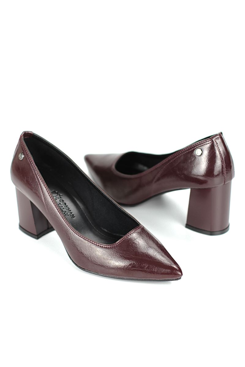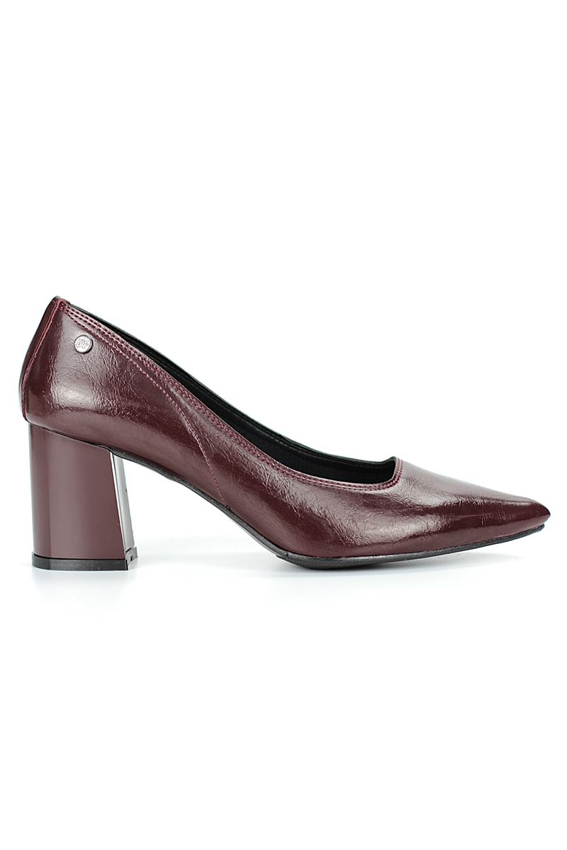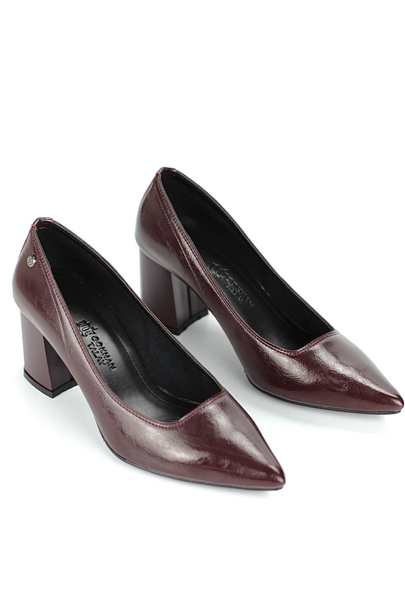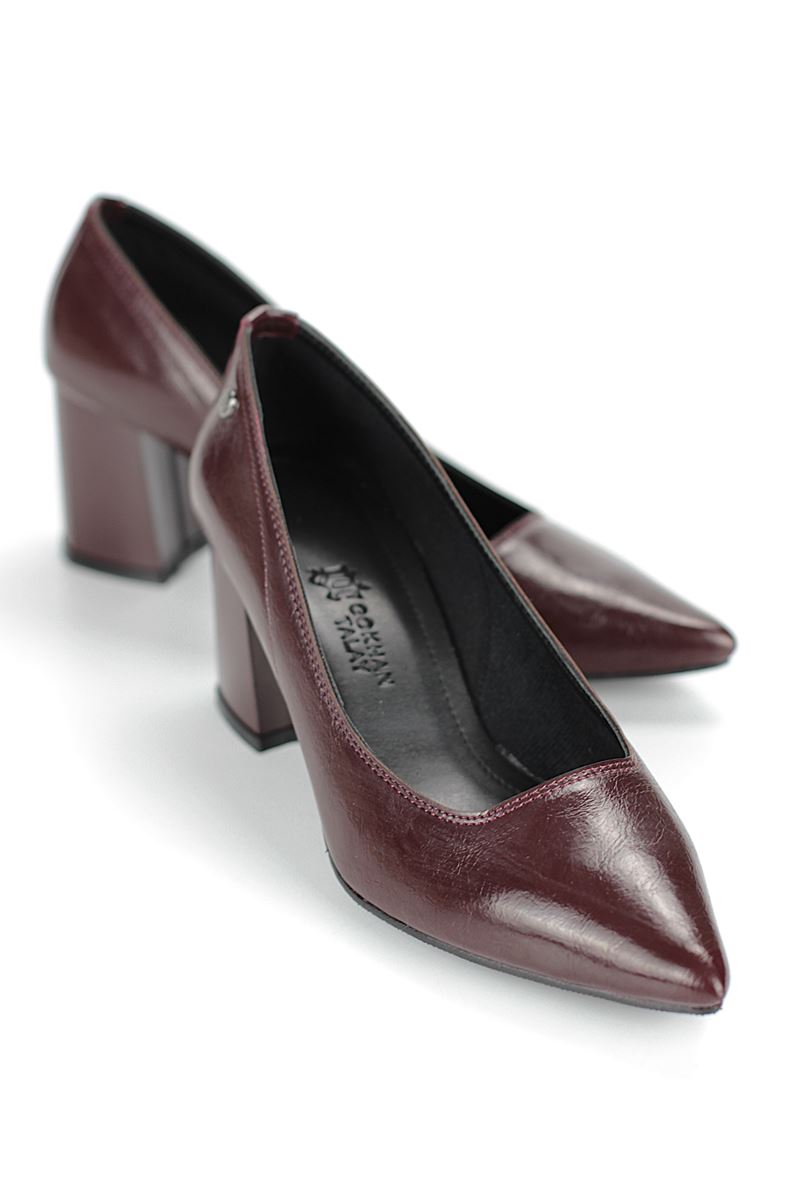 Nevra Esnek Yumuşak Kaymaz Taban (7 cm) Bordo Rugan Kadın Kalın Topuklu Ayakkabı