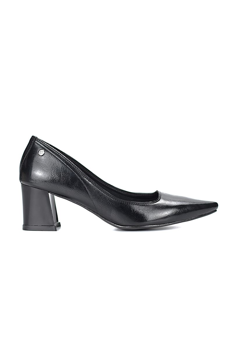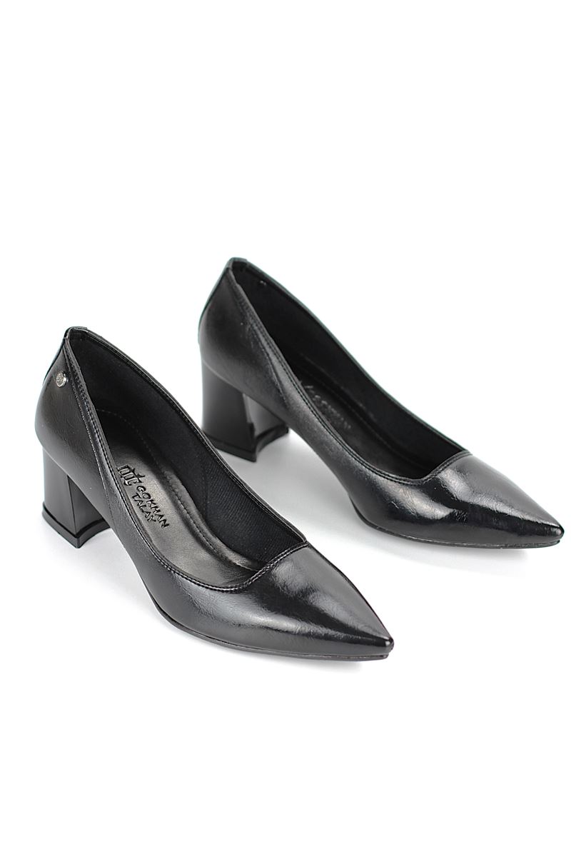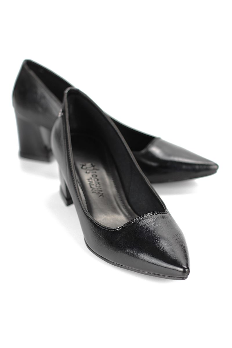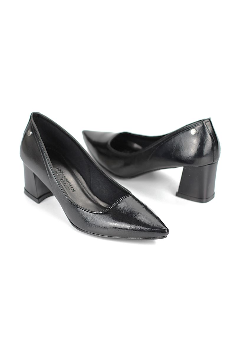 Nevra Esnek Yumuşak Kaymaz Taban (7 cm) Siyah Rugan Kadın Kalın Topuklu Ayakkabı