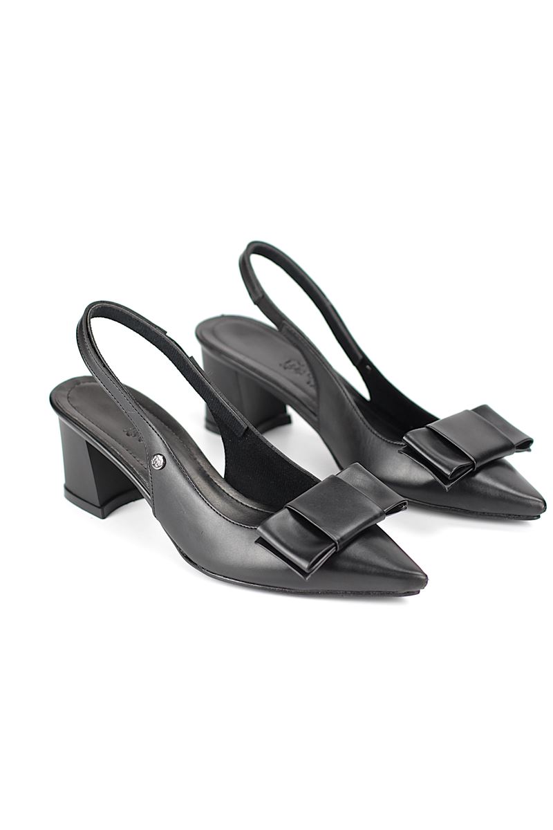Modern ve şık tasarımıyla öne çıkan siyah cilt slingback topuklu ayakkabı, Cilt dokusu ve zarif topuğuyla özel günlerde ve ofis kombinlerinde şıklığınızı tamamlar. Kaymaz tabanı Esnek Dokusu ve rahat kalıbıyla hem stil sahibi hem de konforludur.