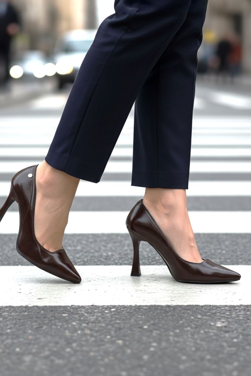 Odette Esnek Yumuşak Kaymaz Taban (10 cm) Kahverengi Rugan Kadın Topuklu Ayakkabı