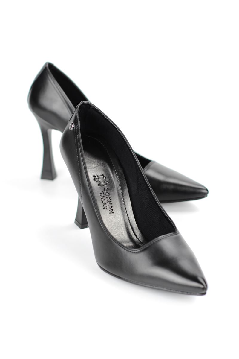 Ravyn Siyah Cilt Yüksek Topuklu (10 cm) Klasik Topuklu Ayakkabı