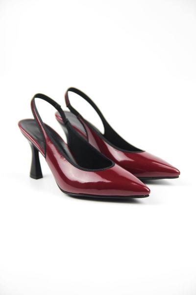 Texass Bordo Cilt Orta Topuklu (8 cm) Kadın Topuklu Ayakkabı