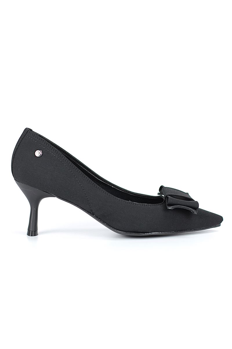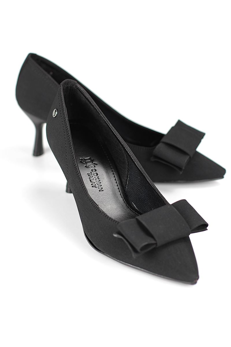 Vellon Esnek Yumuşak Kaymaz Taban (4 cm) Siyah Süet Köşe Fiyonk Kadın Topuklu Ayakkabı