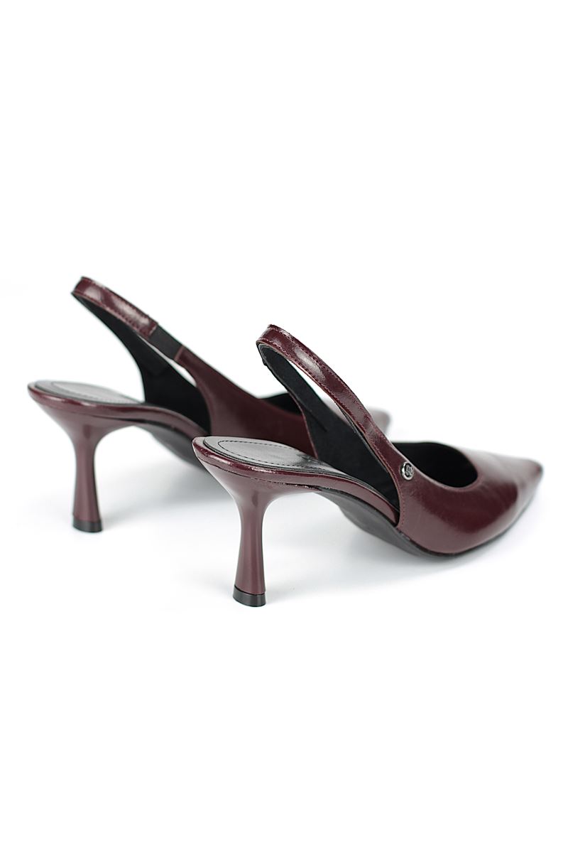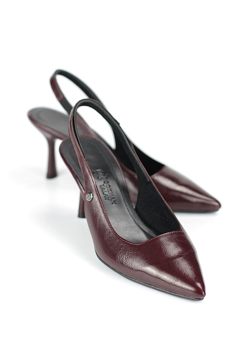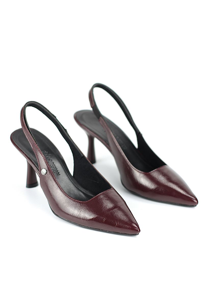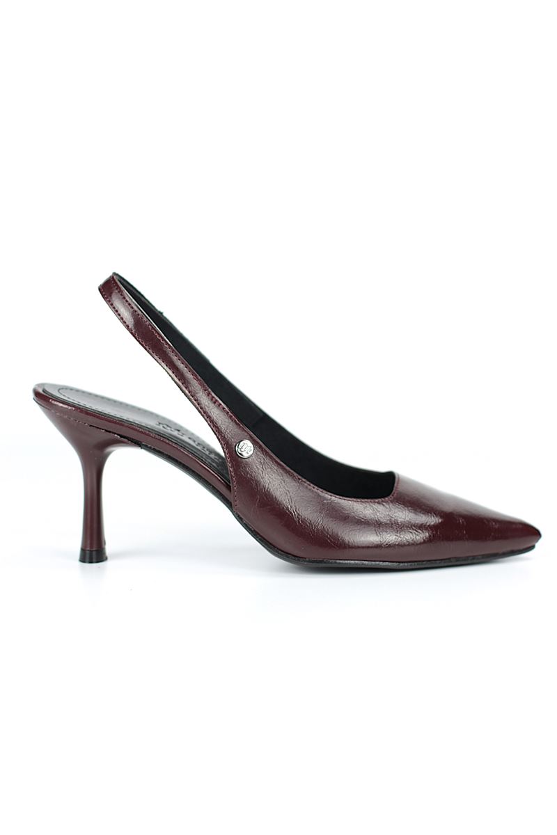 Modern ve şık tasarımıyla öne çıkan bordo Rugan slingback topuklu ayakkabı, rugan dokusu ve zarif ince topuğuyla özel günlerde ve ofis kombinlerinde şıklığınızı tamamlar. Kaymaz tabanı Esnek Dokusu ve rahat kalıbıyla hem stil sahibi hem de konforludur.