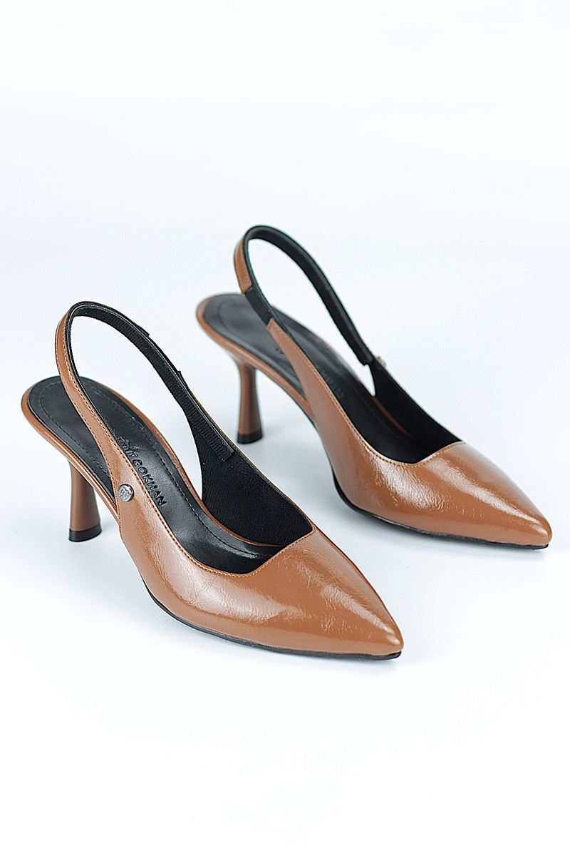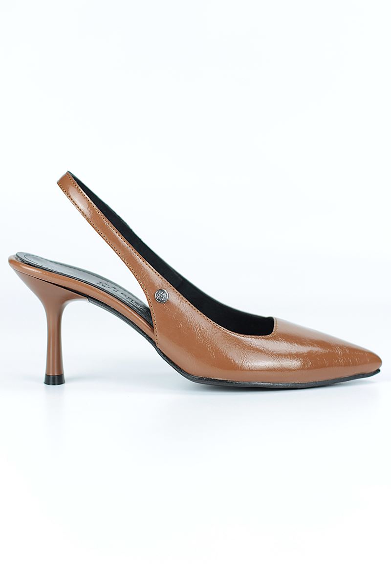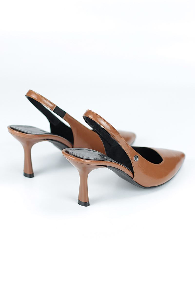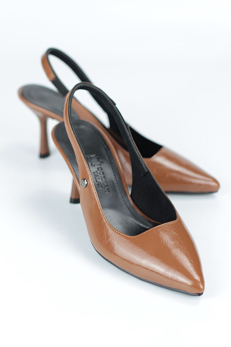 Modern ve şık tasarımıyla öne çıkan Taba Rugan slingback topuklu ayakkabı, rugan dokusu ve zarif ince topuğuyla özel günlerde ve ofis kombinlerinde şıklığınızı tamamlar. Kaymaz tabanı Esnek Dokusu ve rahat kalıbıyla hem stil sahibi hem de konforludur.