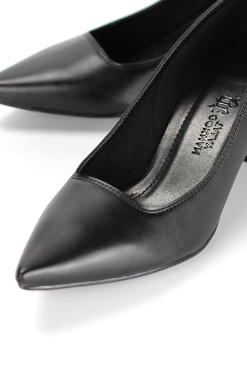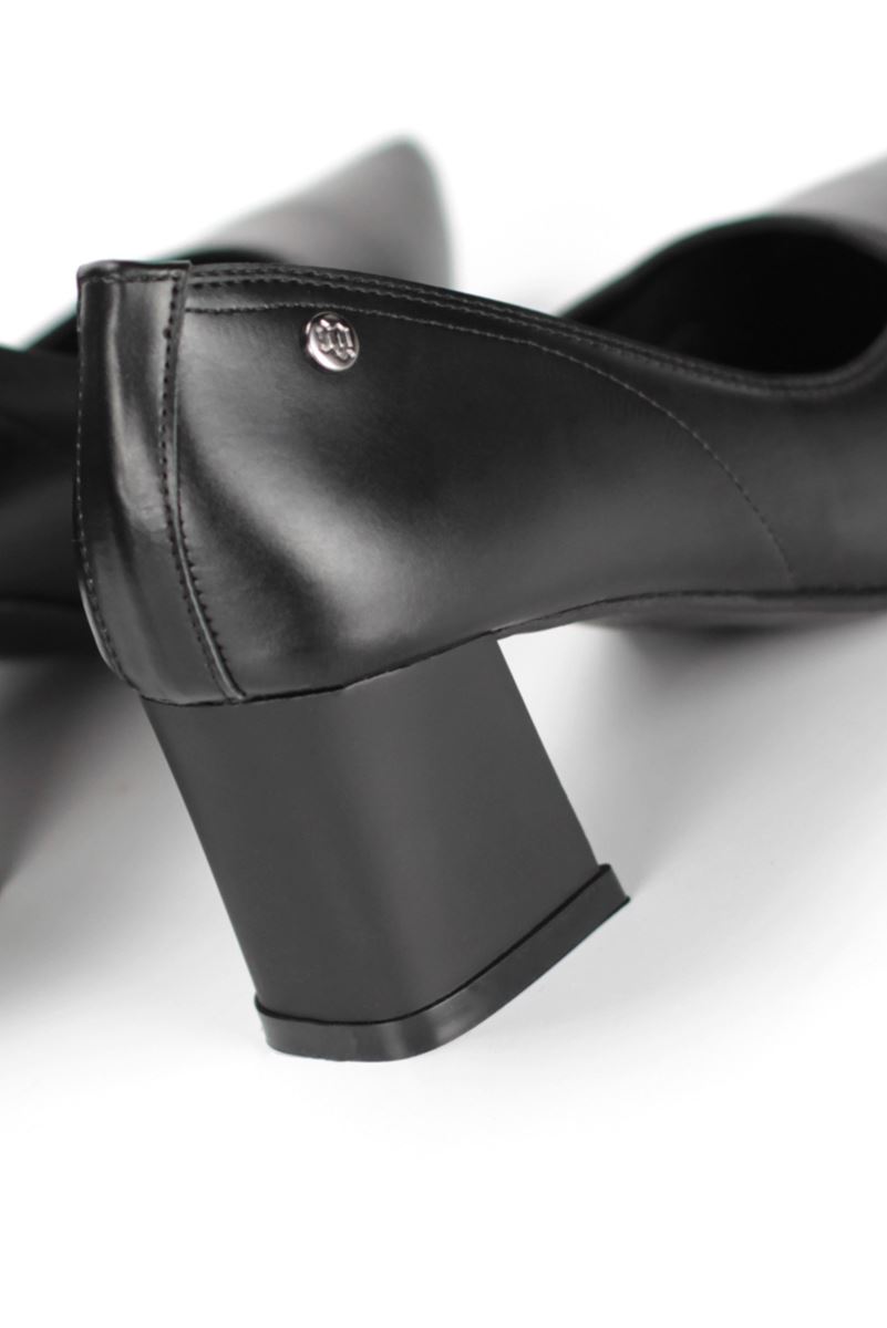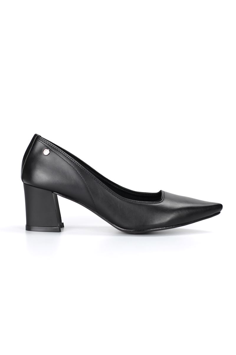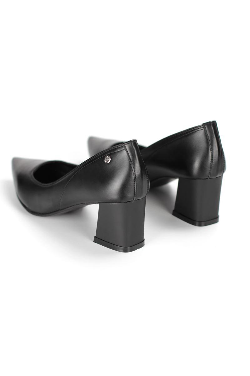 Zaneta Esnek Yumuşak Kaymaz Taban (4 cm) Kadın Kalın Topuk Siyah Cilt Ayakkabı