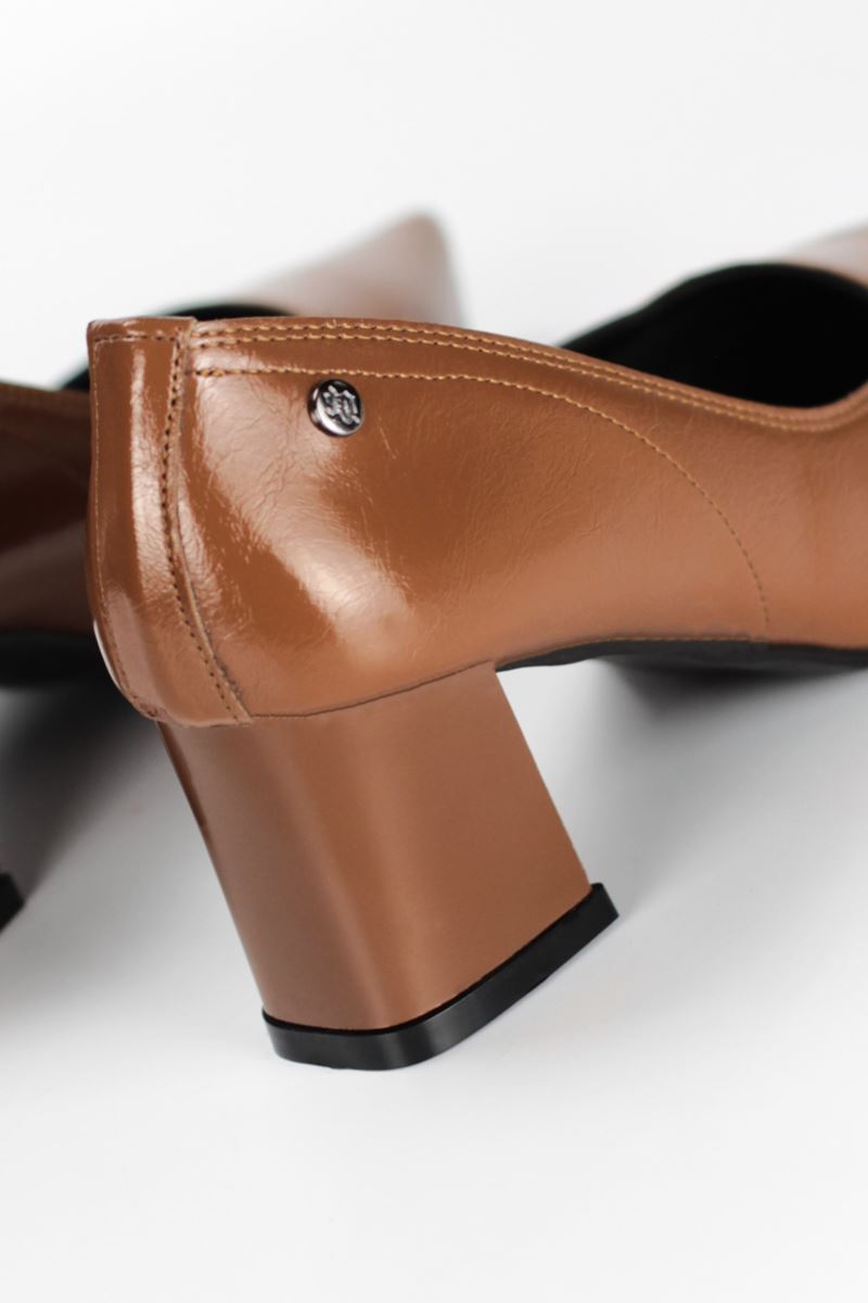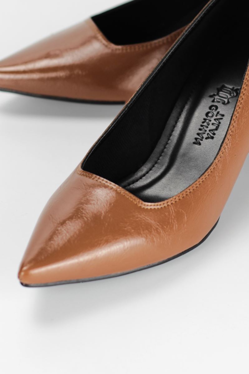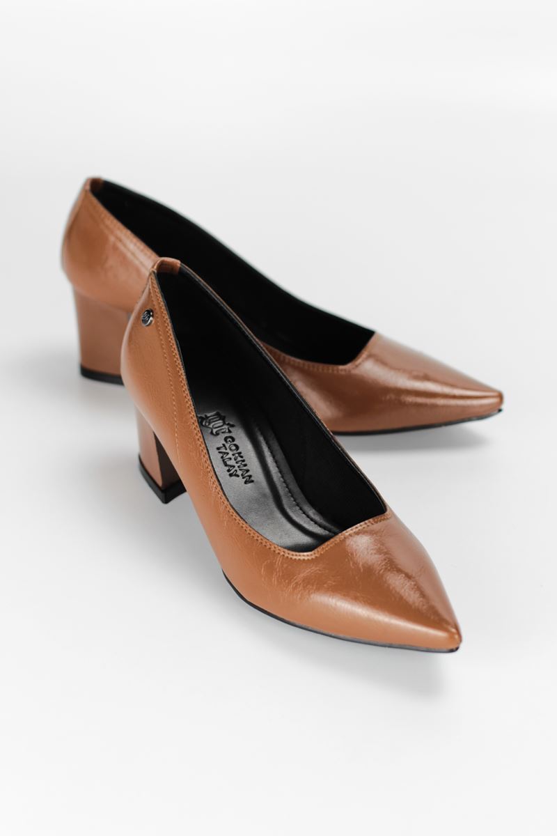 Zaneta Esnek Yumuşak Kaymaz Taban (4 cm) Kadın Kalın Topuk Taba Rugan Ayakkabı